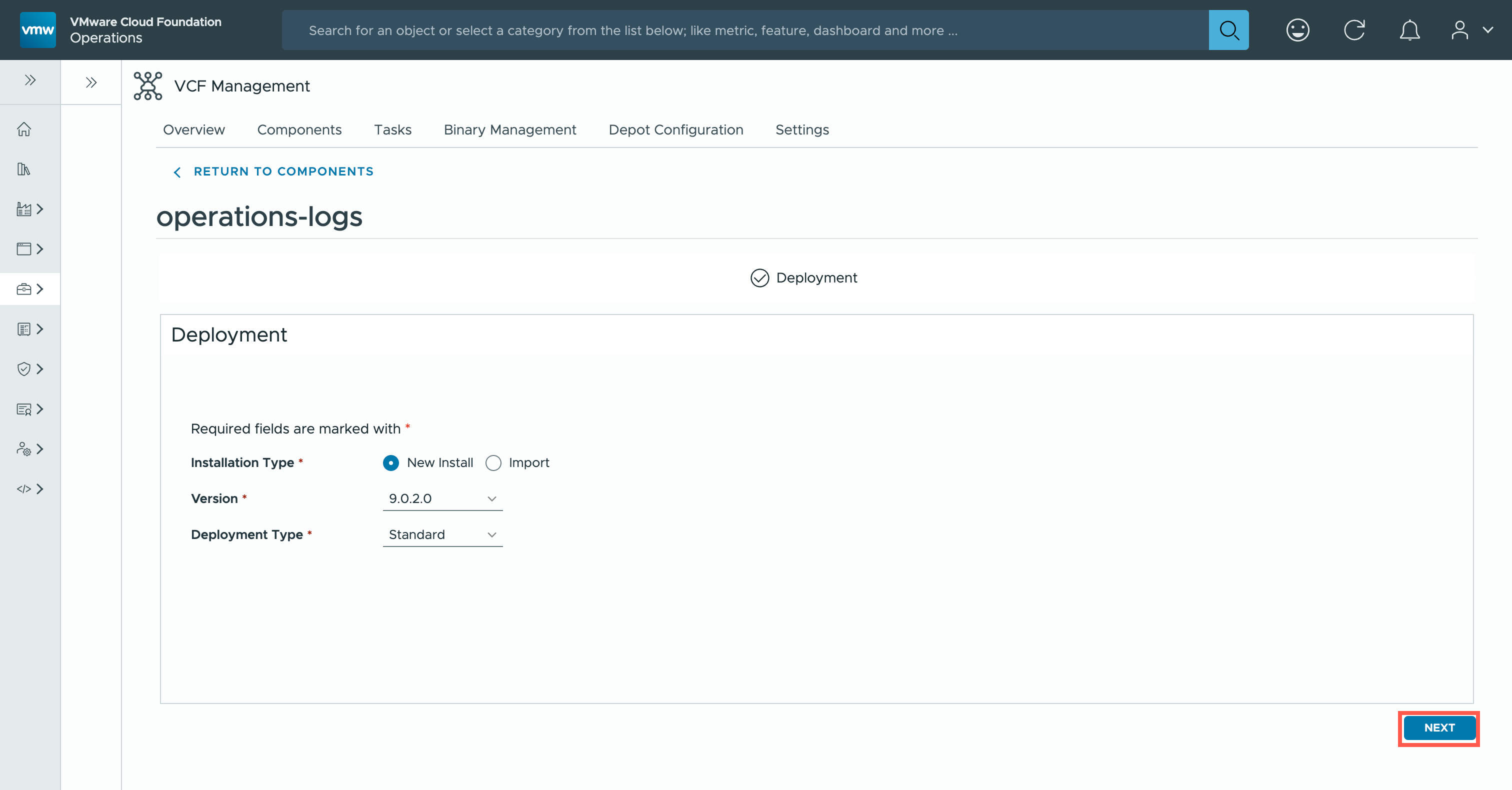 - Configured either an online or offline depot and downloaded the VCF Operations for logs install binaries.