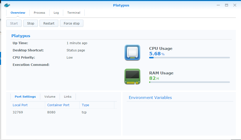 For all those guys who, like me, don’t run a Mac laptop and cannot use the VMware’s AppCatalyst to run Photon, I thought I would write a quick post on how to get Platypus working within a Docker Container upon the Synology NAS (if you have one). Synology’s support for Docker can be found here and it contains a list of supported NAS devices.