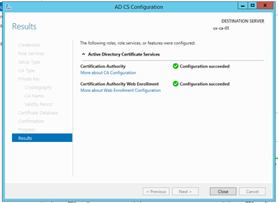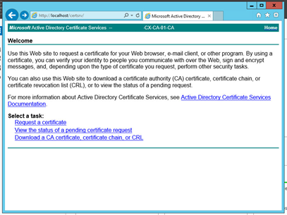 Check the Web Enrollment is working by browsing to http://localhost/certsrv/