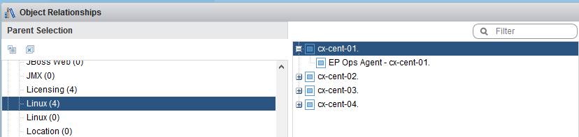 - Select Linux from the Object Types tree to filter the list of objects to show the monitored Linux Servers.