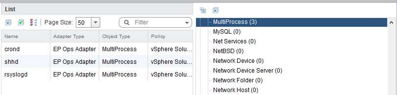 - From the far right of the screen, select Object Type and then select Multi Process to display the objects previously created (in this instance I have created three, crond, sshd and rsyslogd) within the List