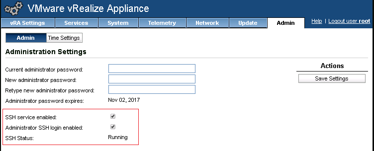 Phew that WAS simple! If SSH isn’t enabled then we just need to enable it via the VAMI ( https://vra.fqdn:5480 ) first.