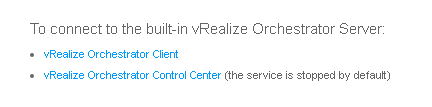 Ah-ha! and we’re just about to click the vRealize Orchestrator Control Center link (which we suddenly remember was BETA in vRO 6) and we do a double take… what does it mean the service is stopped by default?