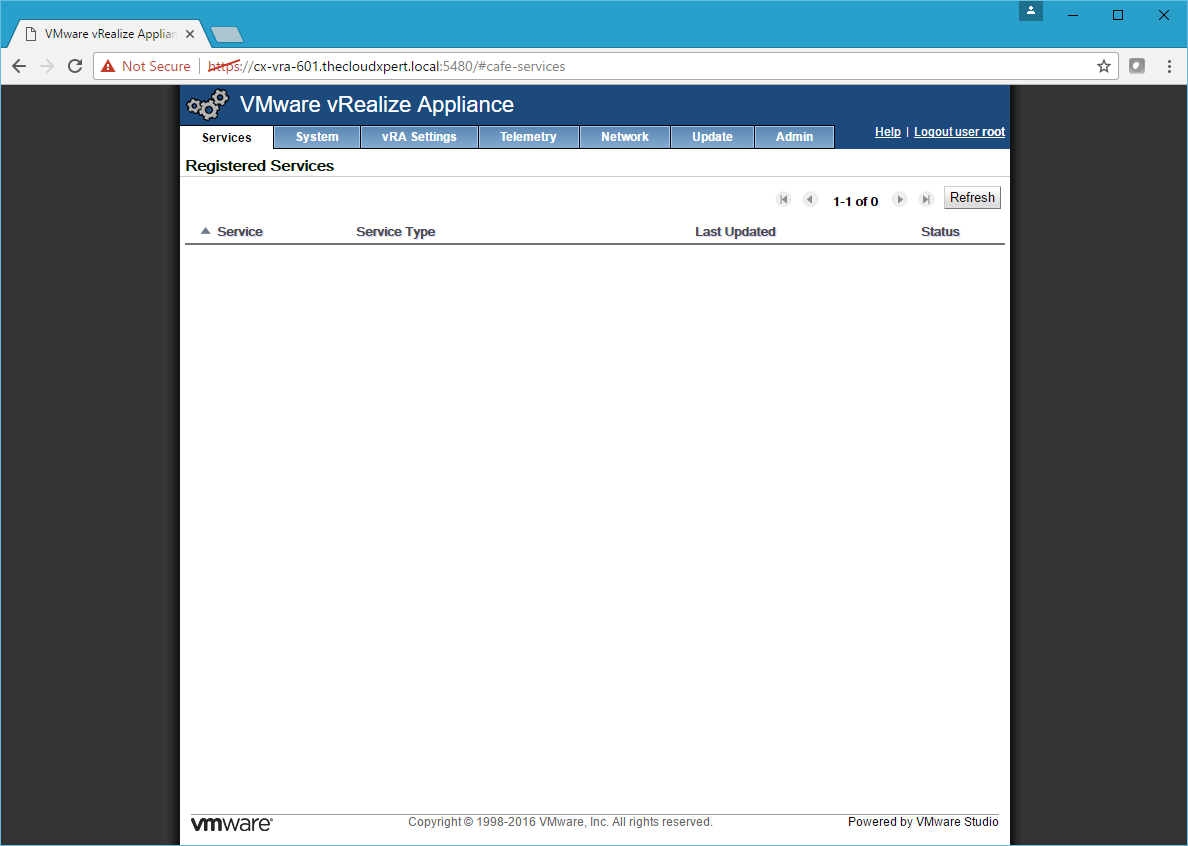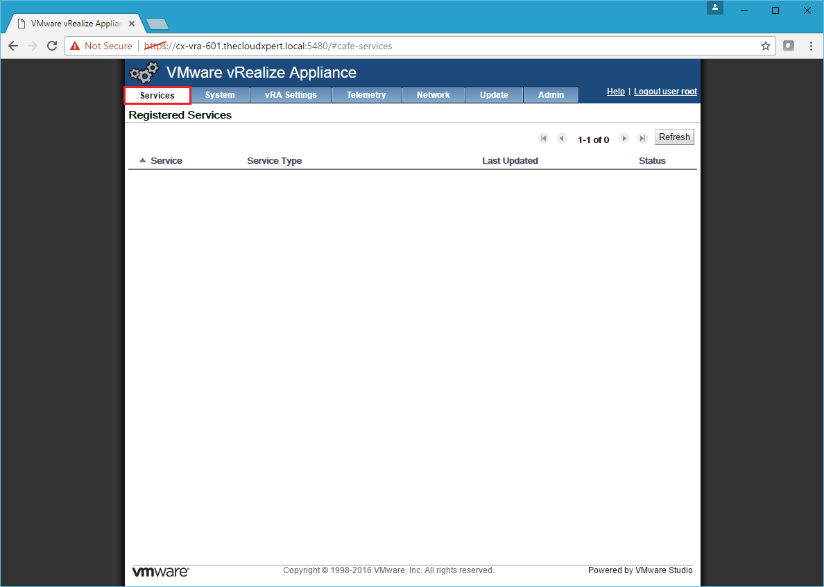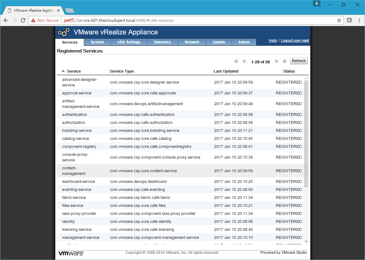 1. Click Refresh to confirm the status of all services is REGISTERED.