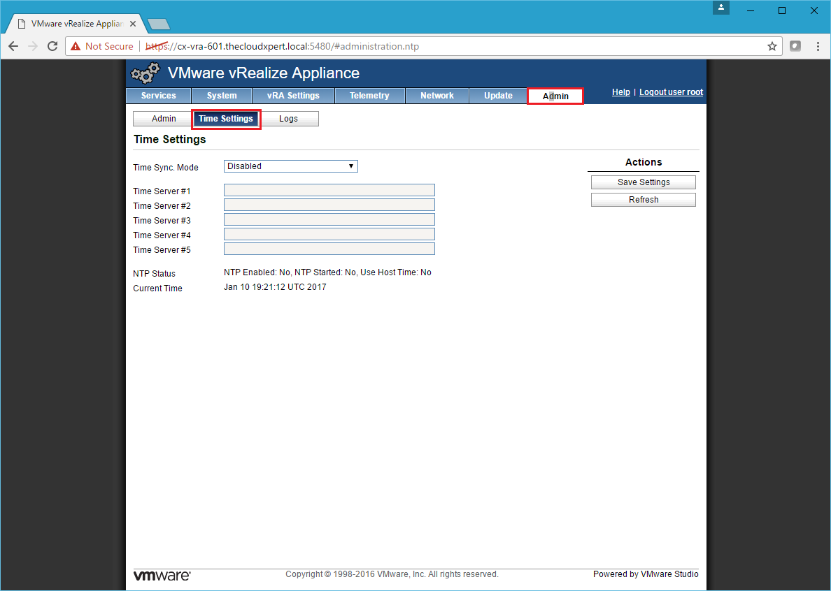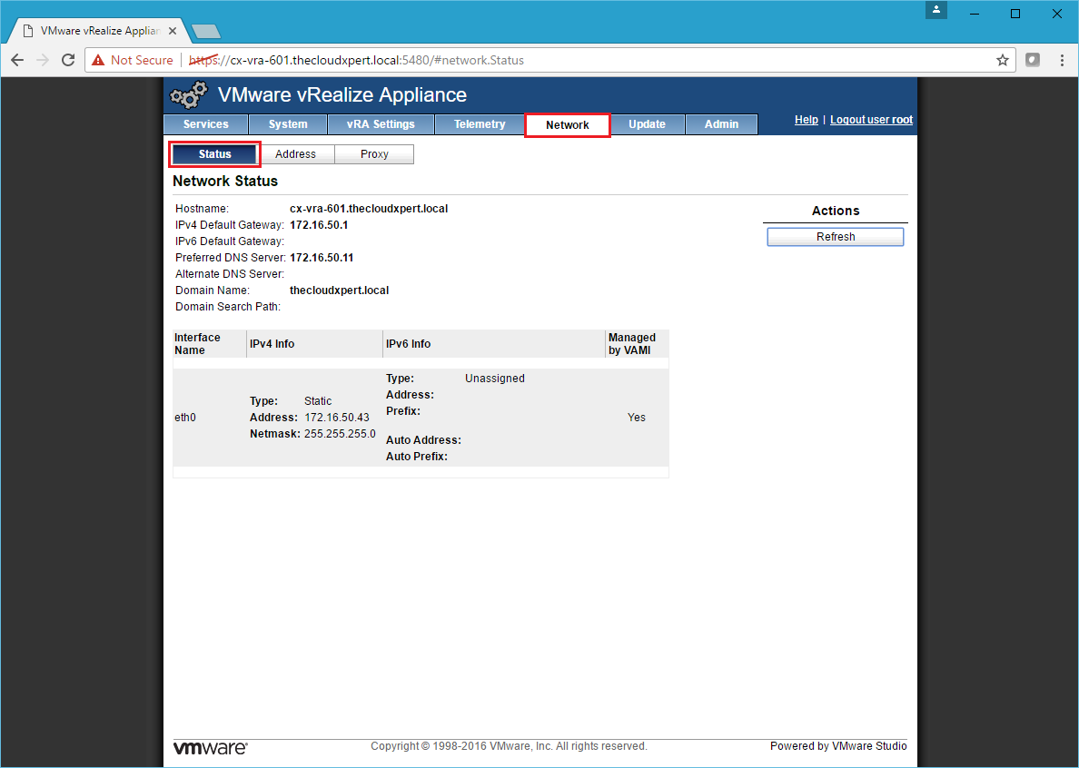 1. Using a web browser, navigate to VAMI of the Automation Appliance (https://automation-appliance.fqdn:5480)