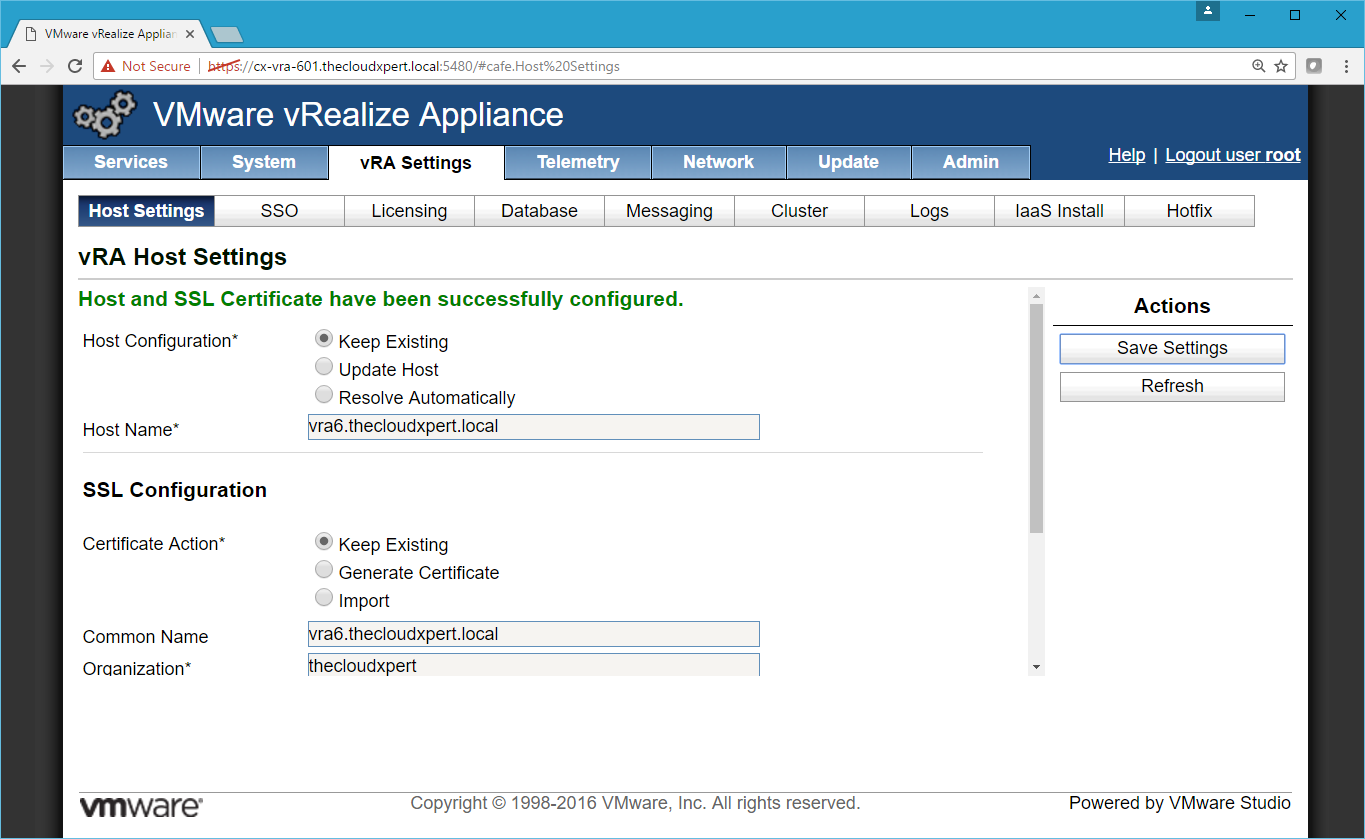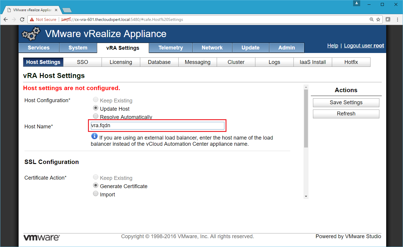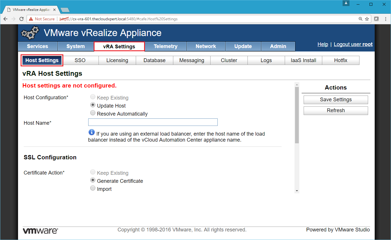 1. Select the vRA Settings Tab and then select **Host Settings **Tab.