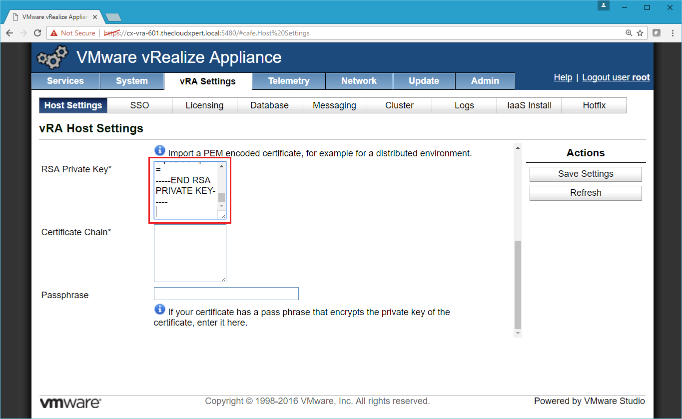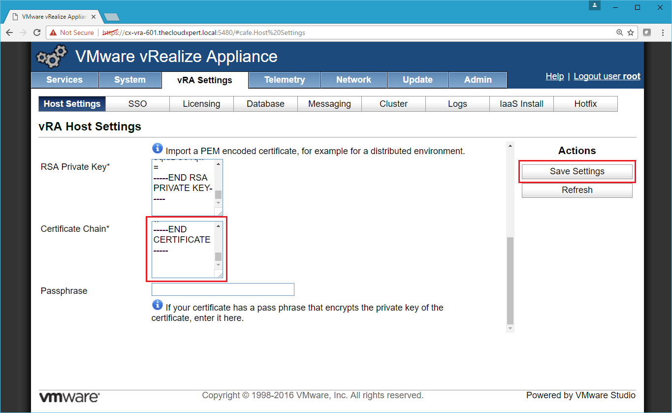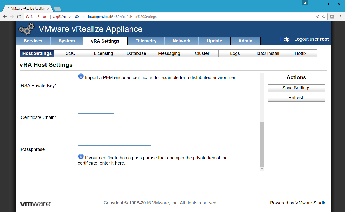 1. Select the vRA Settings Tab and then select **Host Settings **Tab.