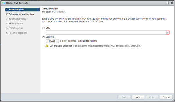 - Click Browse, navigate to the location of the Identity Appliance OVA, select it and then click Open.