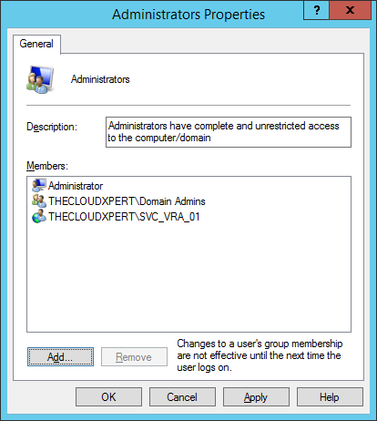 - Add the vRealize Automation Service to the following User Rights Assignments: