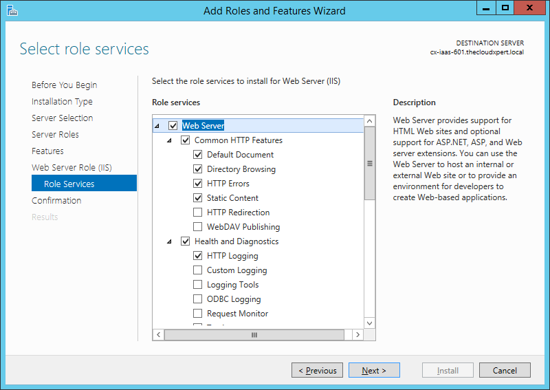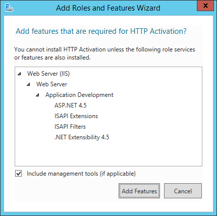 - Expand the WCF Services feature and check the HTTP Activation checkbox.