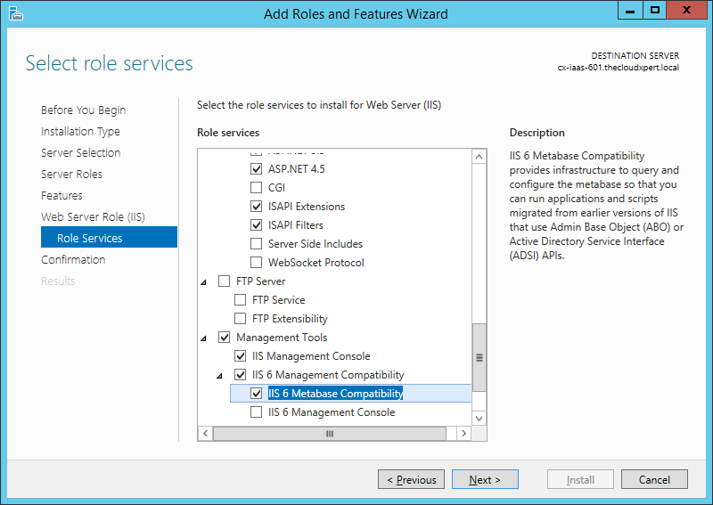 - Management Tools > IIS 6 Management Compatibility > IIS 6 Metabase Compatibility