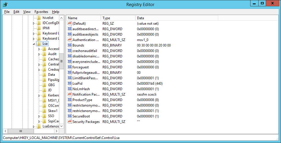 HKEY_LOCAL_MACHINE\SYSTEM\CurrentControlSet\Control\Lsa\