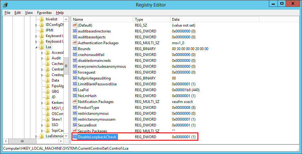 - Configure Loopback Check Registry Setting (for Distributed only)