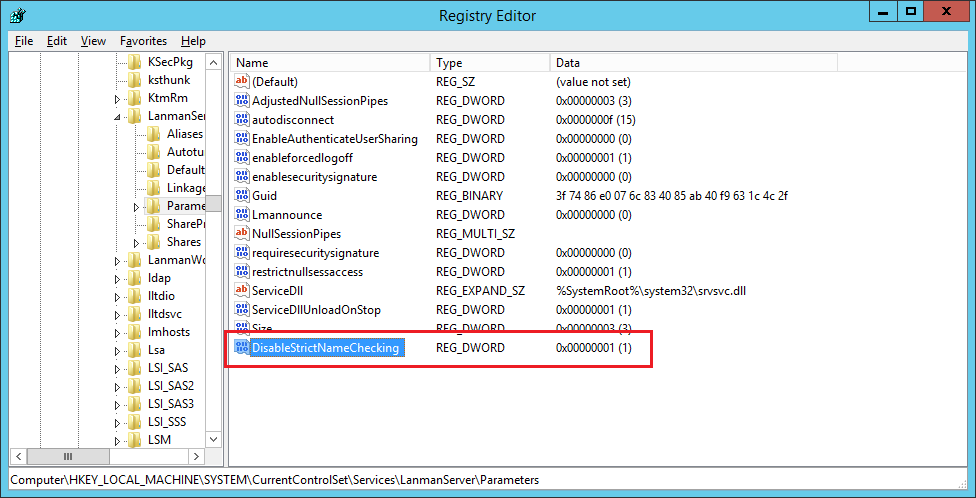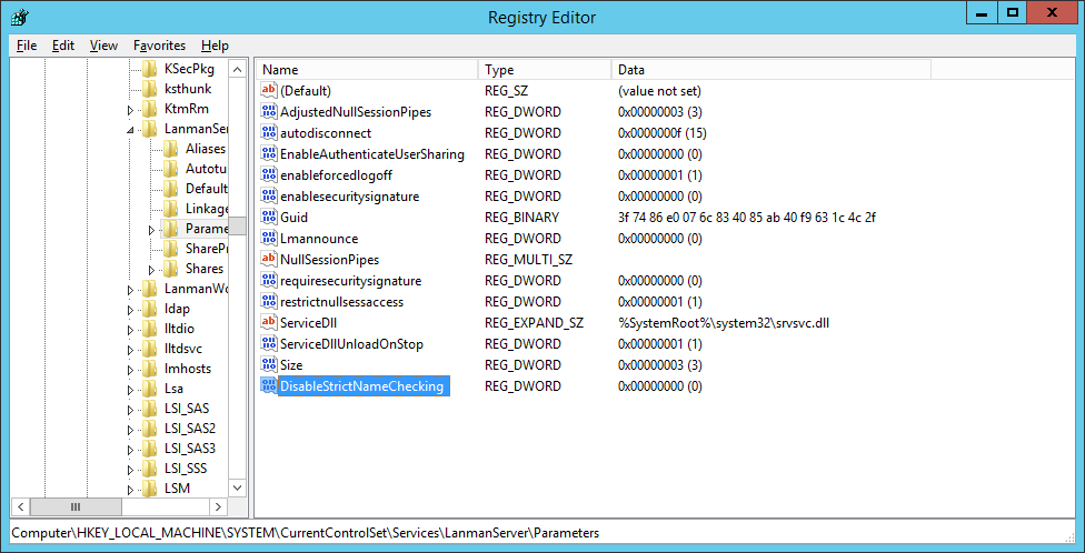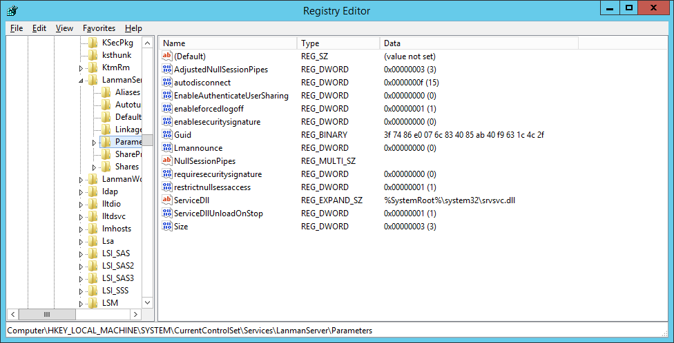 HKEY_LOCAL_MACHINE\System\CurrentControlSet\Services\LanmanServer\Parameters