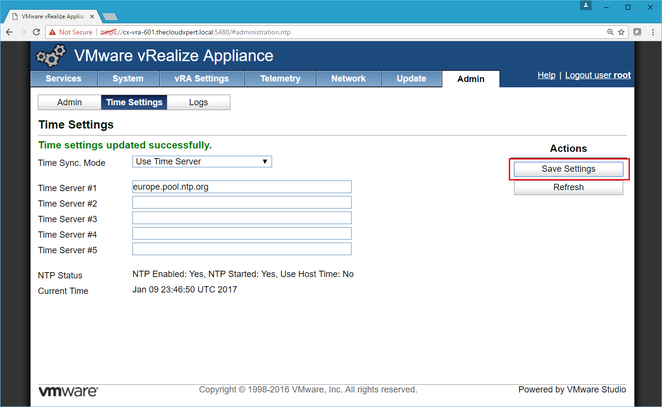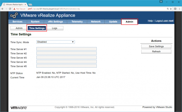 - Configure NTP server for vRealize Appliances