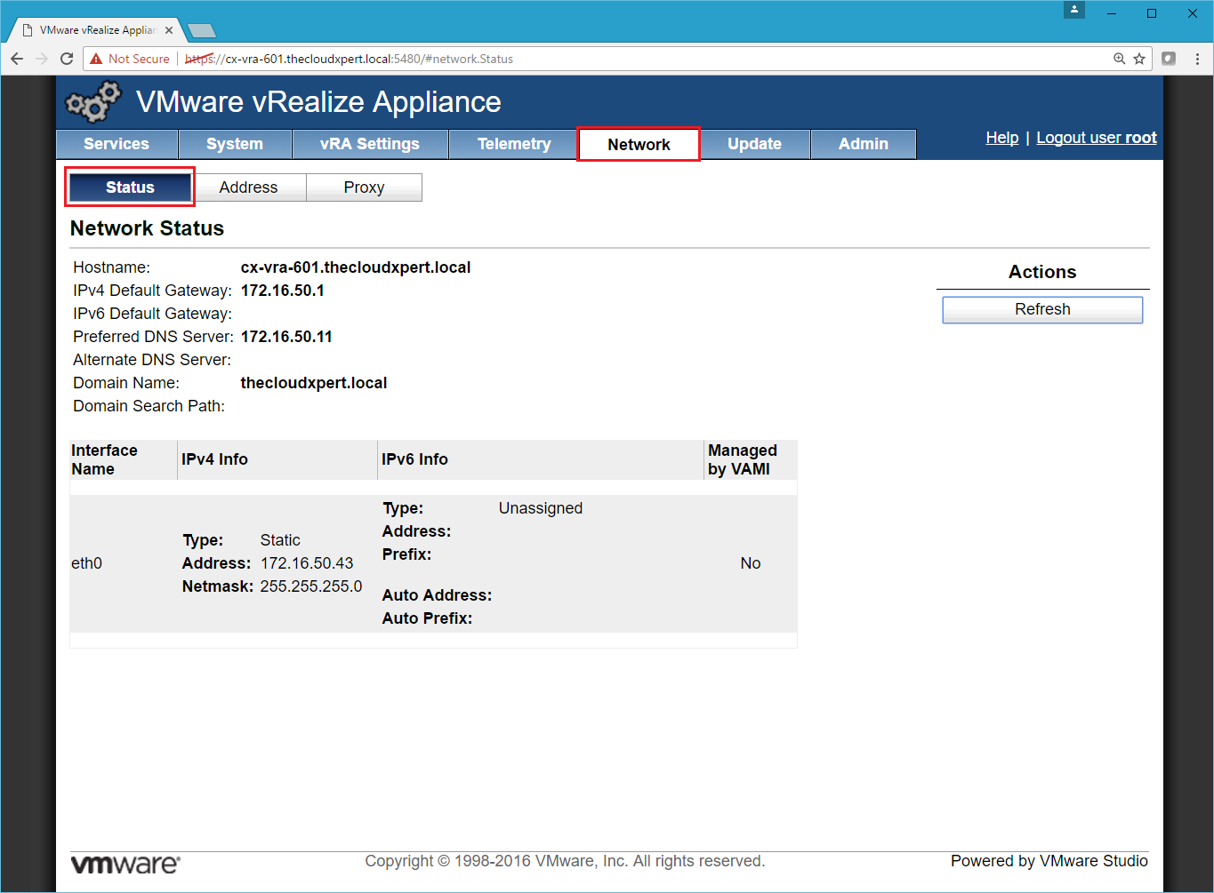 - Navigate to the VAMI interface of the appliance ( https://vra-appliance.fqdn:5480 )