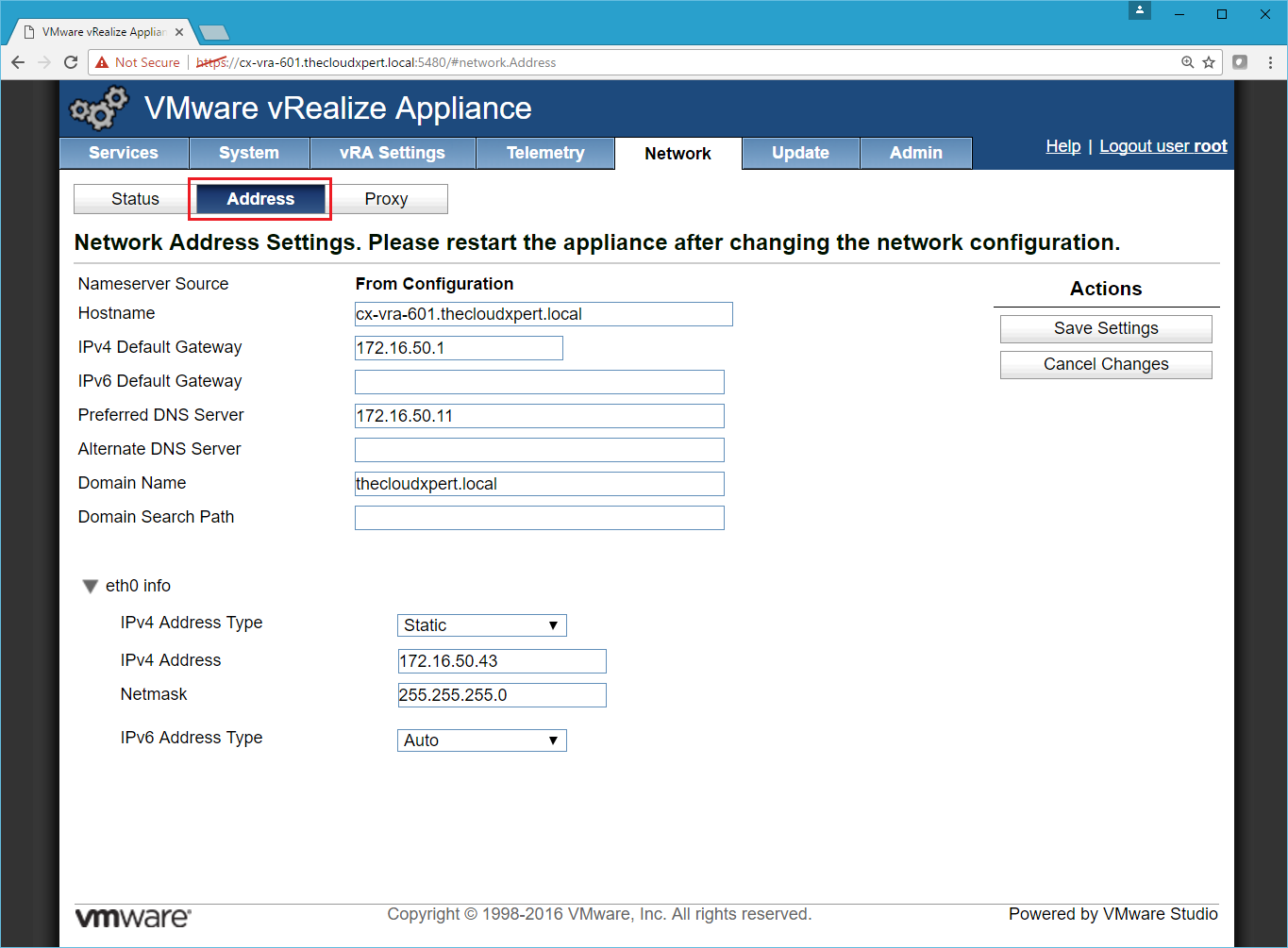 Assign appropriate IP Address to the vRealize Appliance