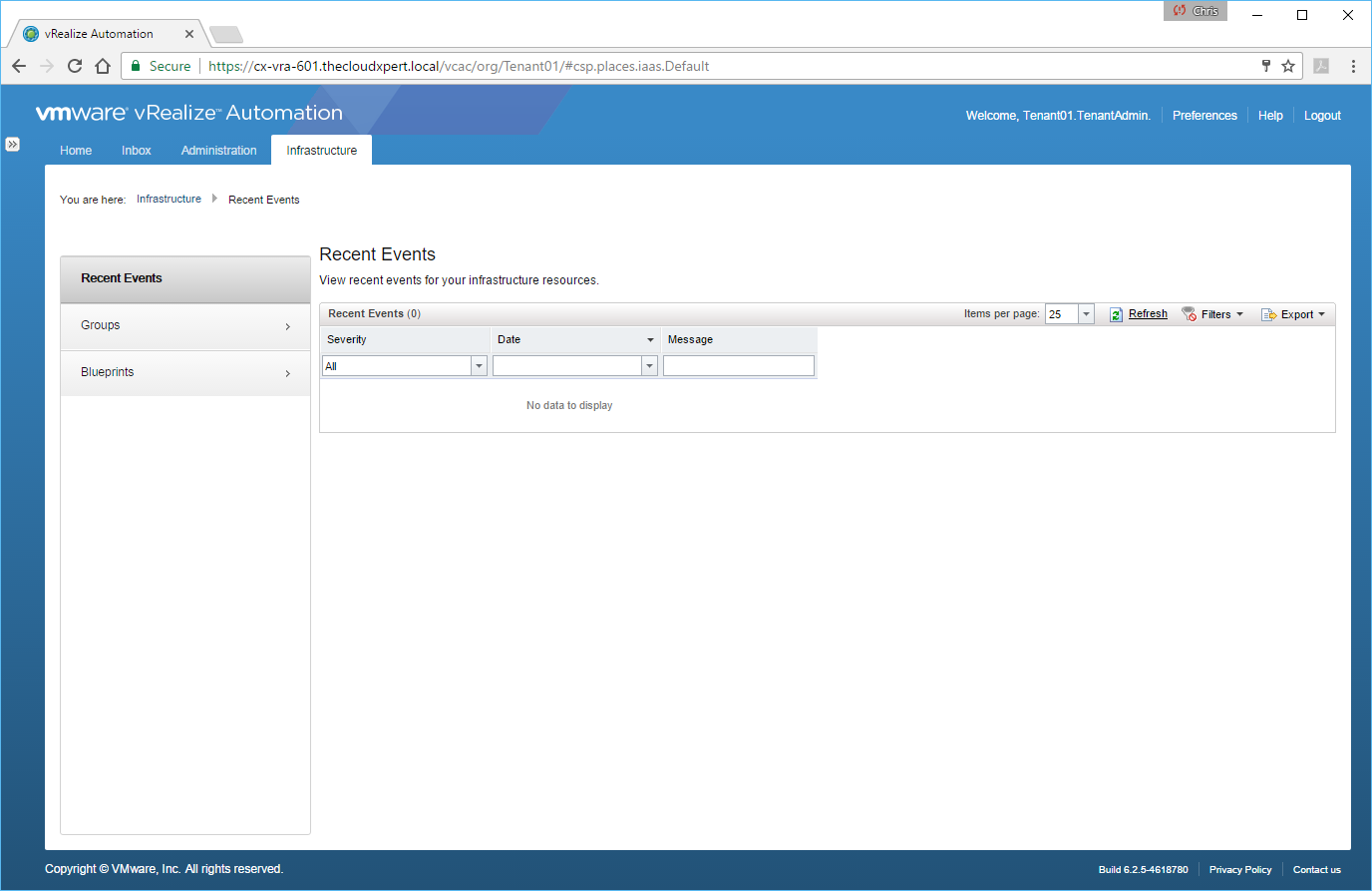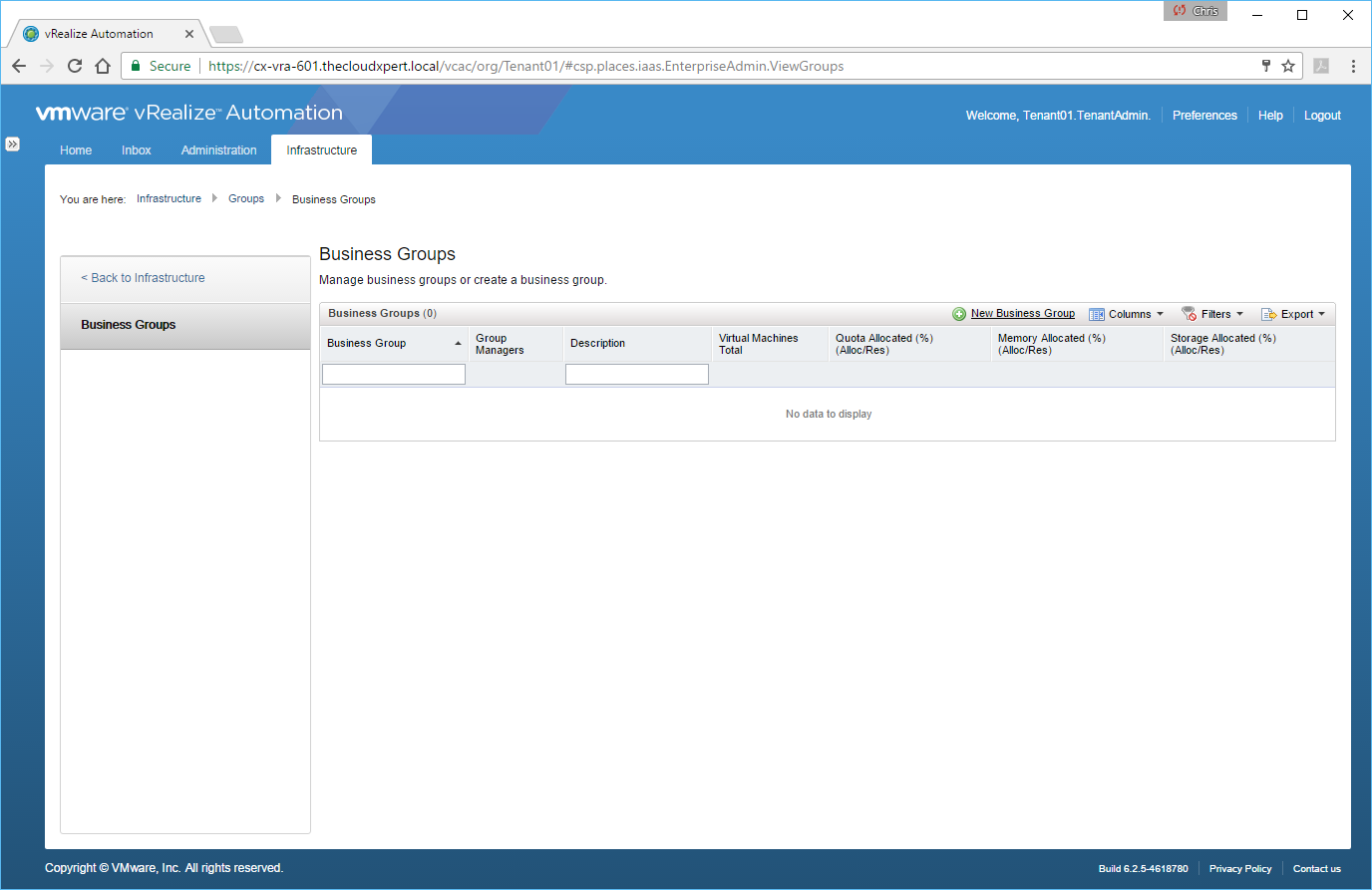 - Navigate to the VMware vRealize Automation Tenant Portal (