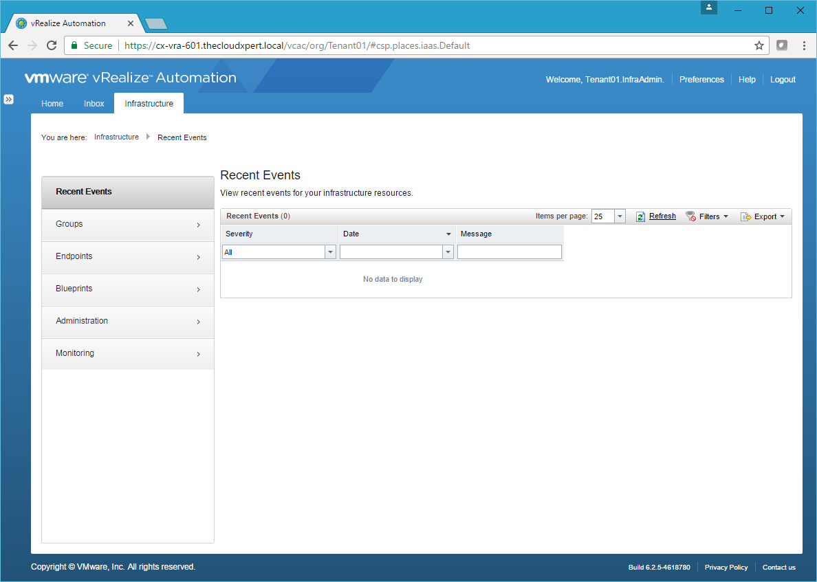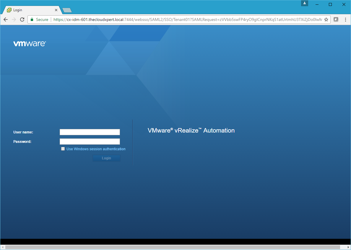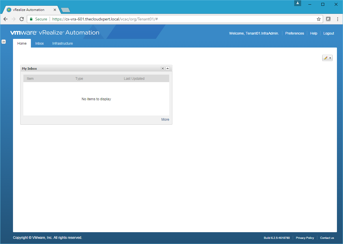 1. Navigate to the vRealize Automation Tenant Portal (https://vra.fqdn/vcac/org/<tenant>)