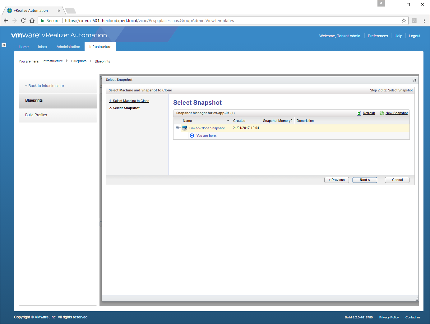 Creating the Linked-Clone Blueprint is the same process whether it be for a Desktop or Server Operating System. As per the prerequisites, you will need to have already deployed Virtual Machine with a VM Snapshot which is used as the basis for the linked-clone.