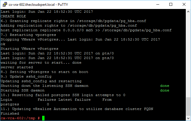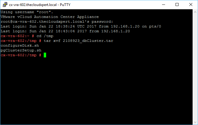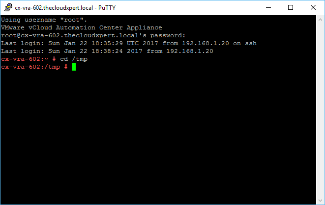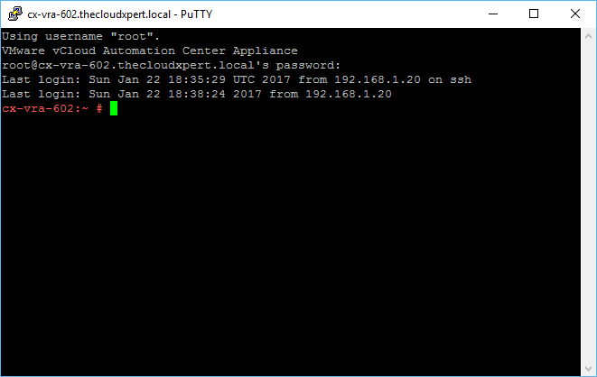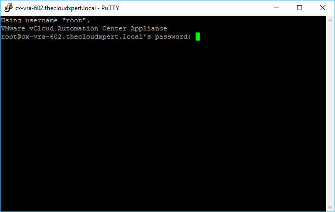 Open a SSH/PuTTy Session to the vRealize Automation Appliance.