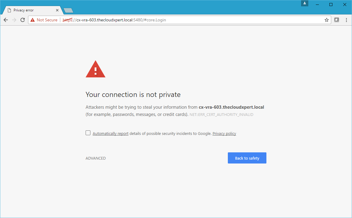 - Click Advanced and then click Proceed to automation-appliance.fqdn (unsafe).