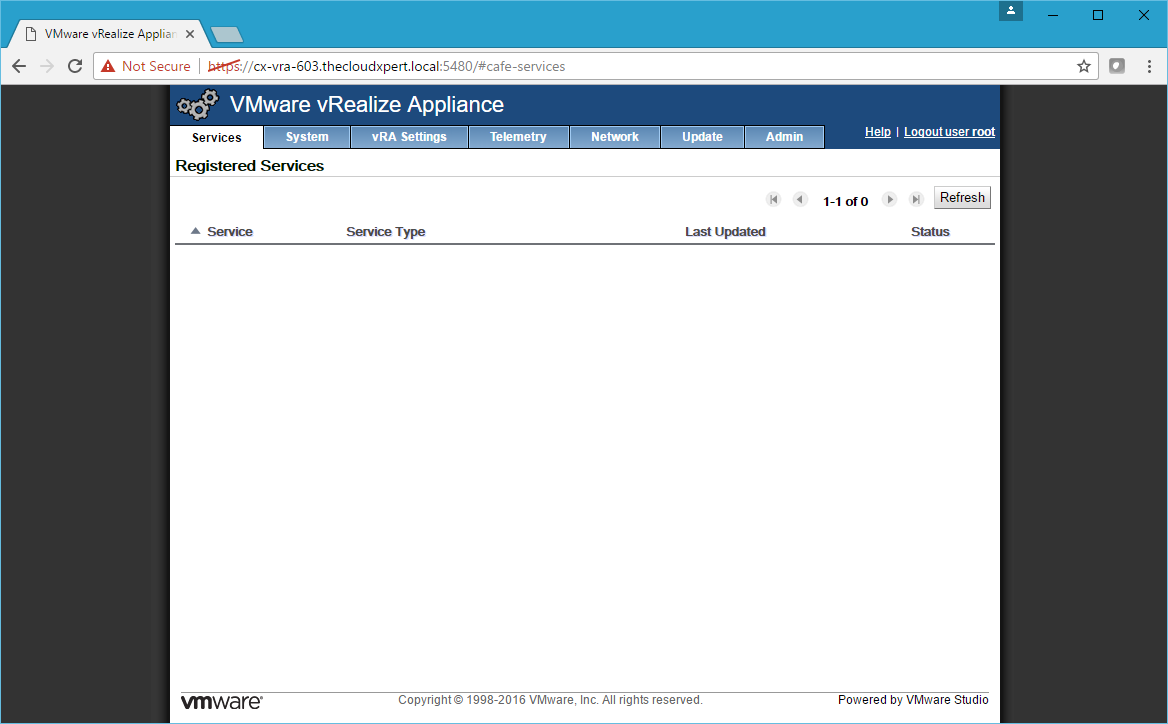 - Using a web browser, navigate to VAMI of the Automation Appliance (