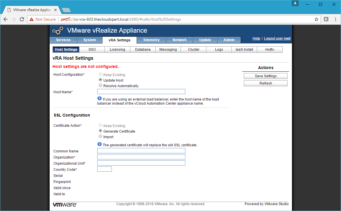 - Click the vRA Settings Tab.