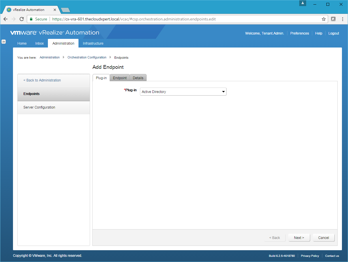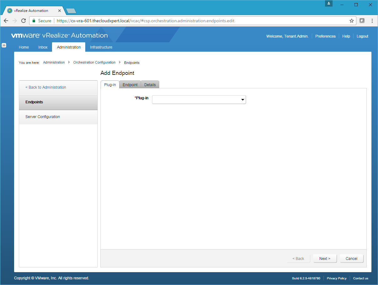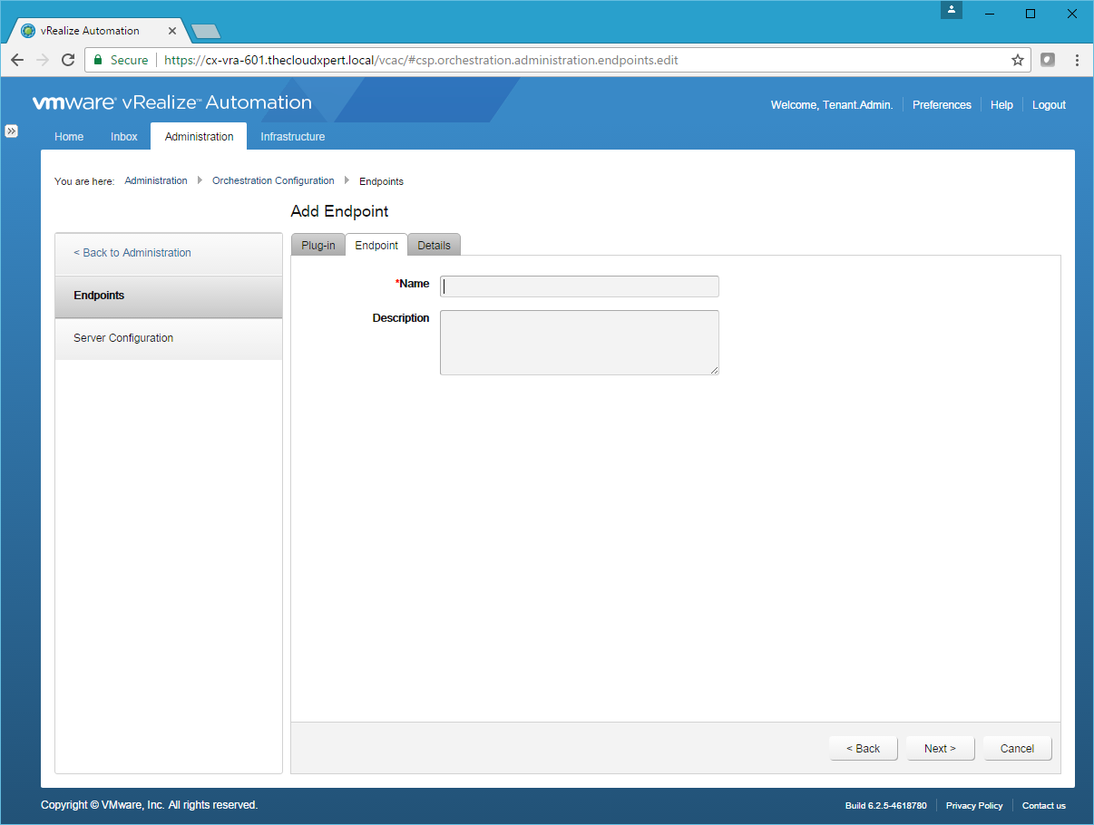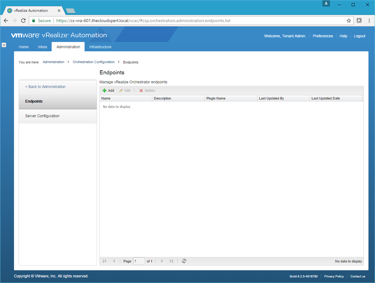 - Navigate to Administration > Orchestration Configuration > Endpoints.