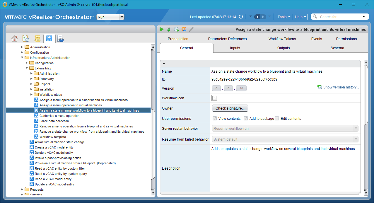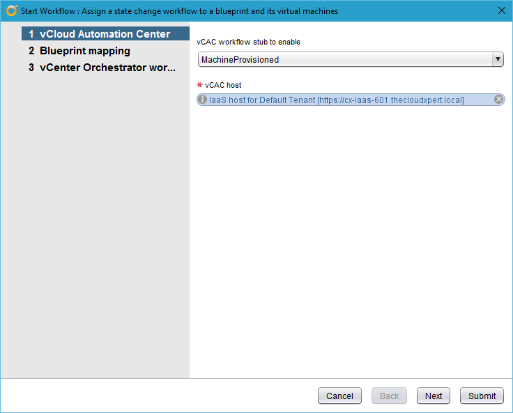 VCAP6-CMA Deploy - Objective 5.2 - Modify a Blueprint to invoke a Workflow during a Lifecycle Change