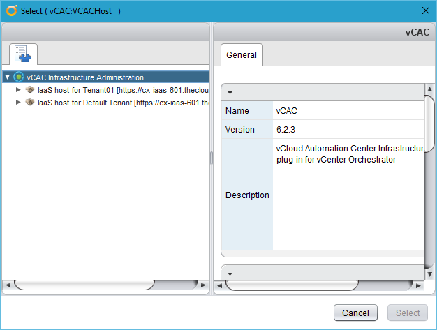 - Select the IaaS Host for the Tenant in which the Blueprint resides and then click Select.