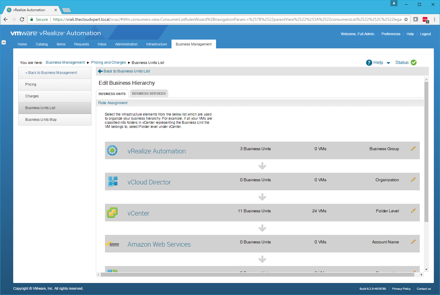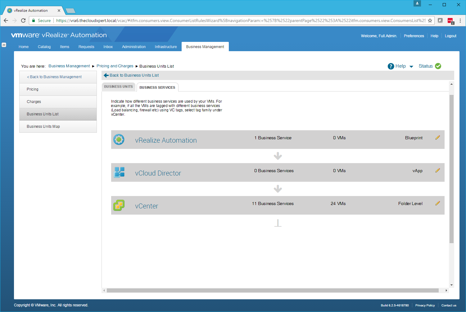 - Click on vRealize Automation to minimize this and expand vCenter.
