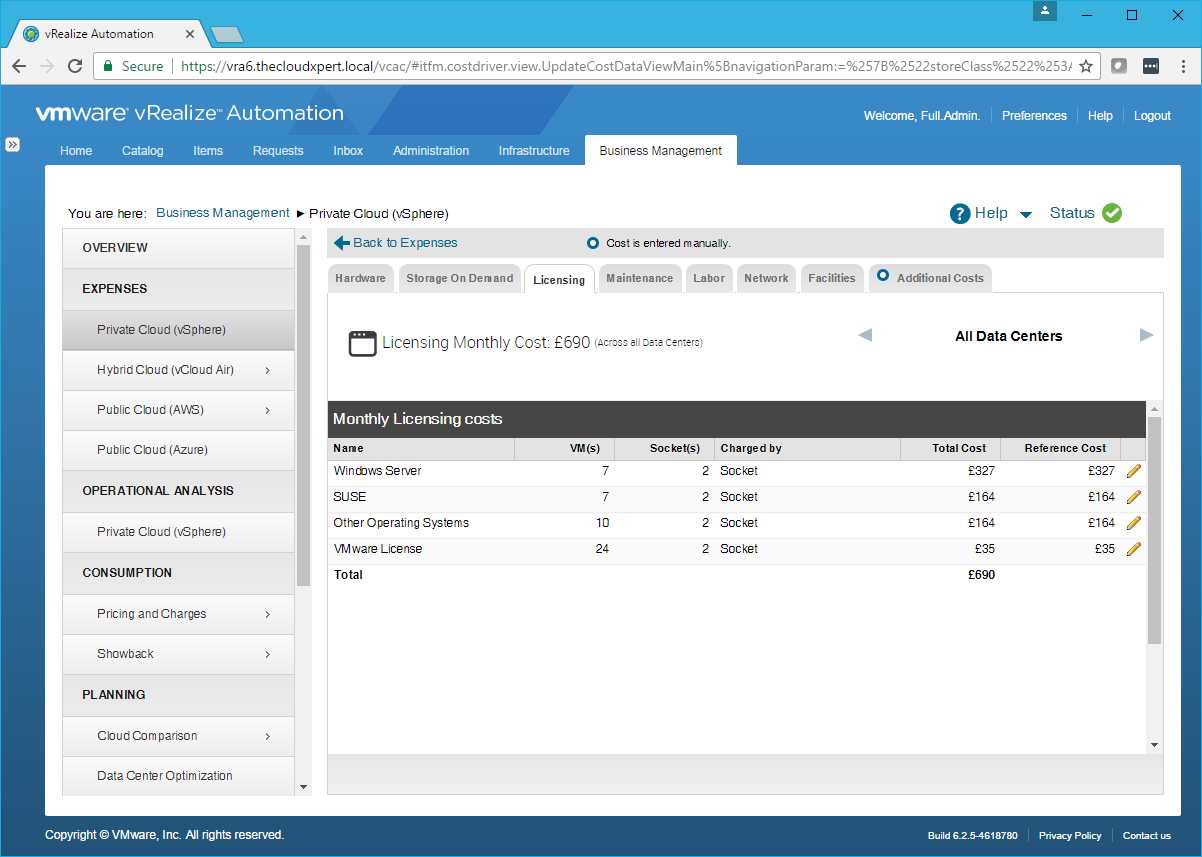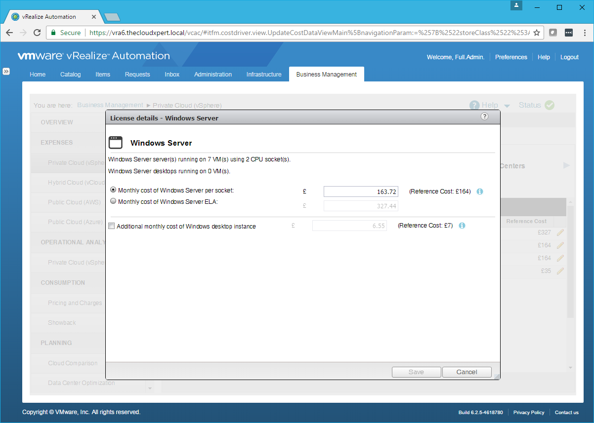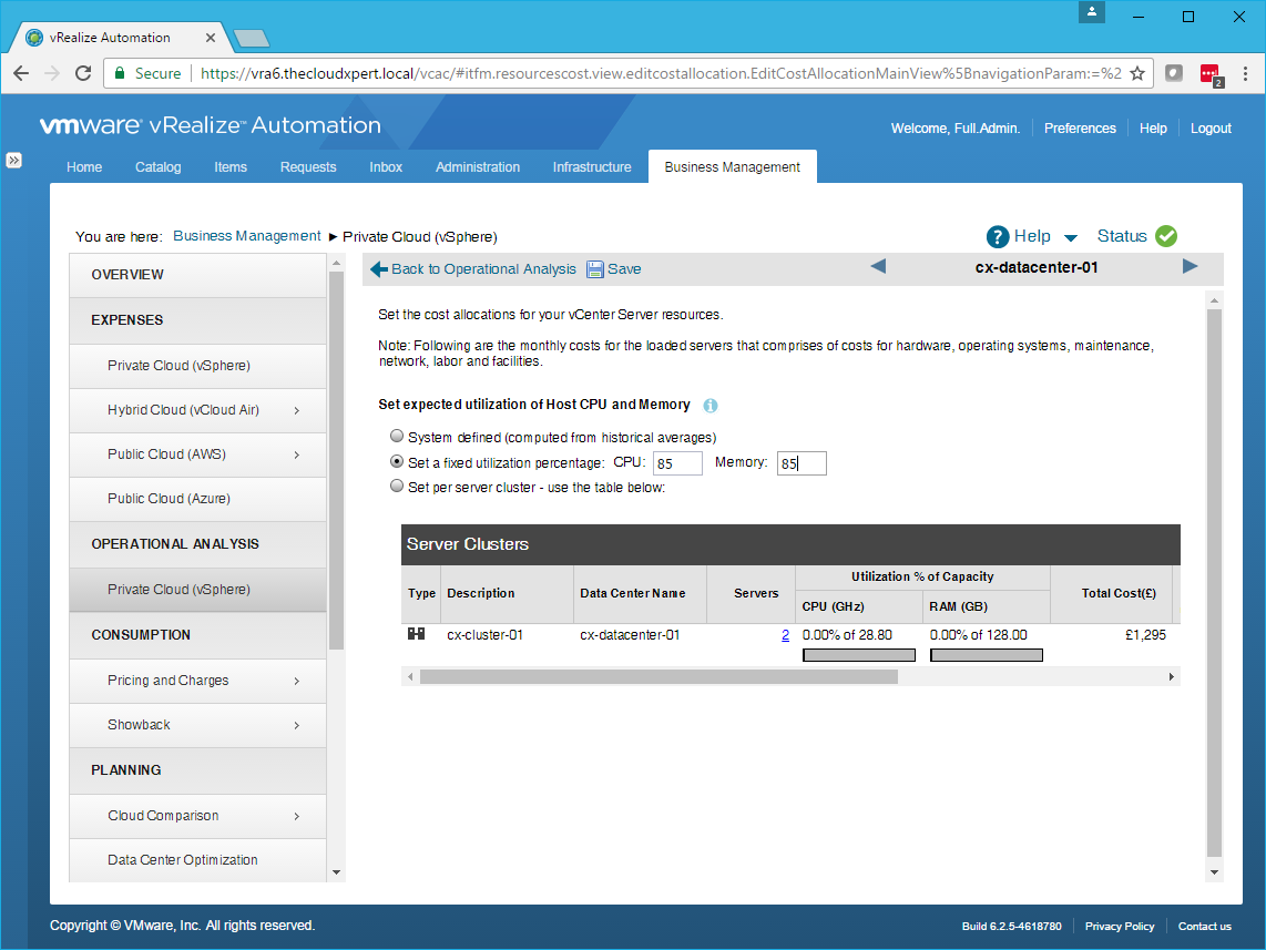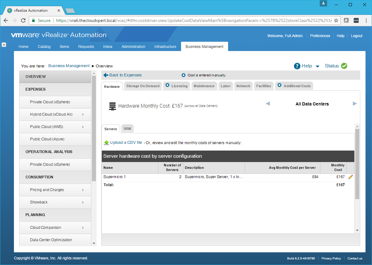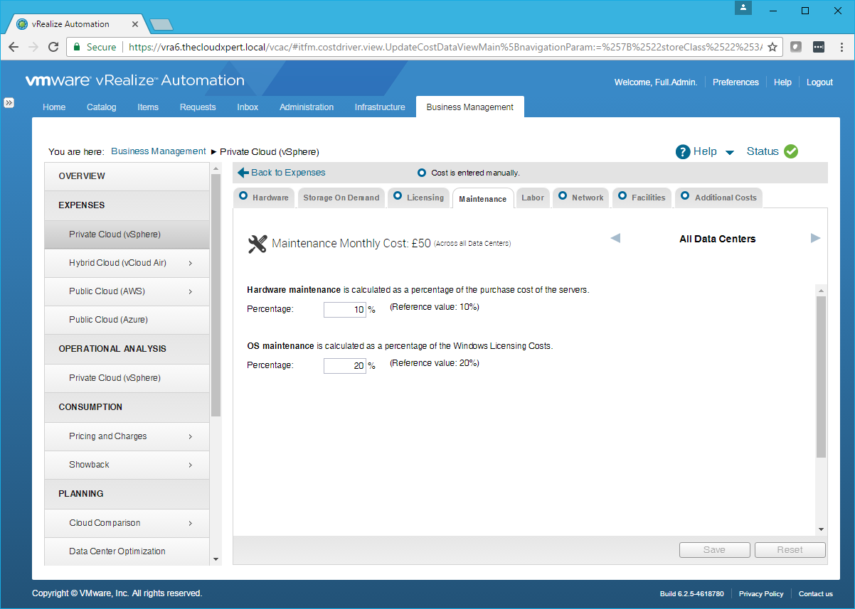 VCAP6-CMA Deploy - Objective 8.2: Configure vRealize Business Standard Costing and Reporting