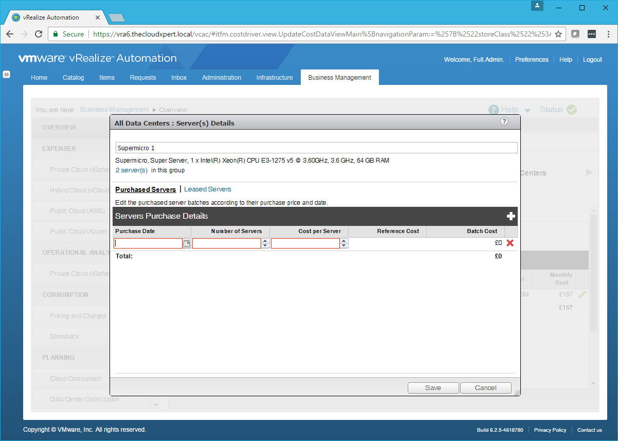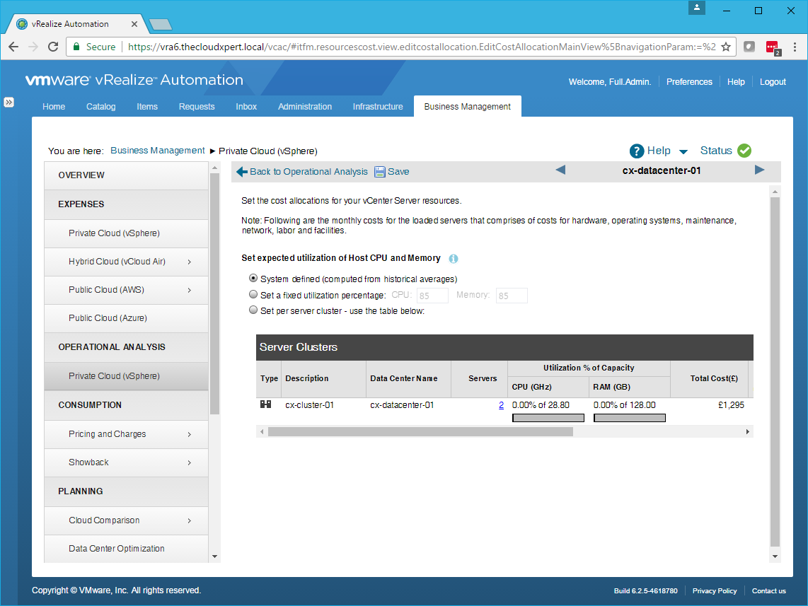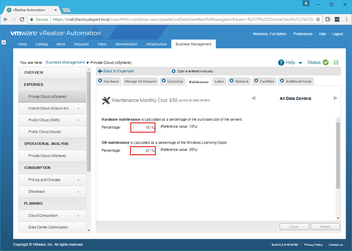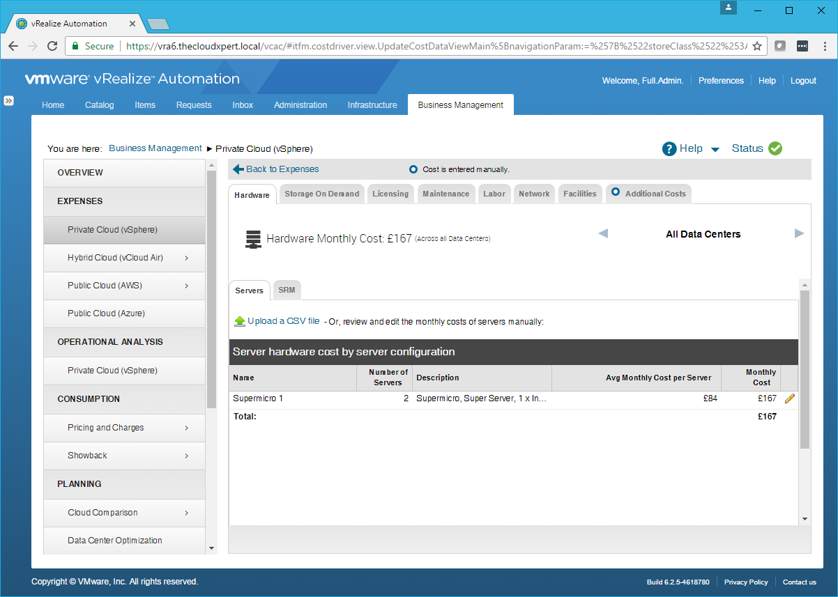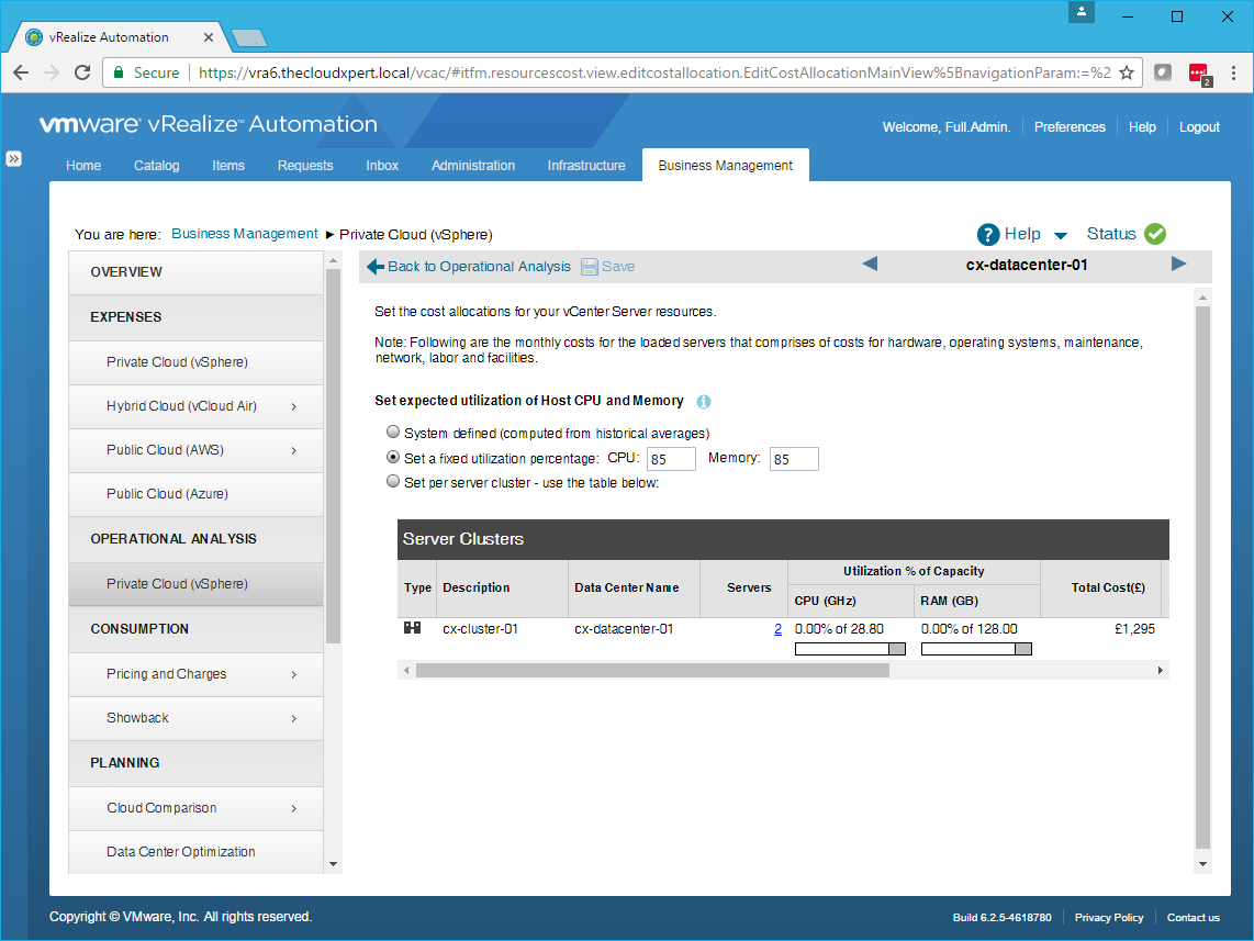VCAP6-CMA Deploy - Objective 8.2: Configure vRealize Business Standard Costing and Reporting