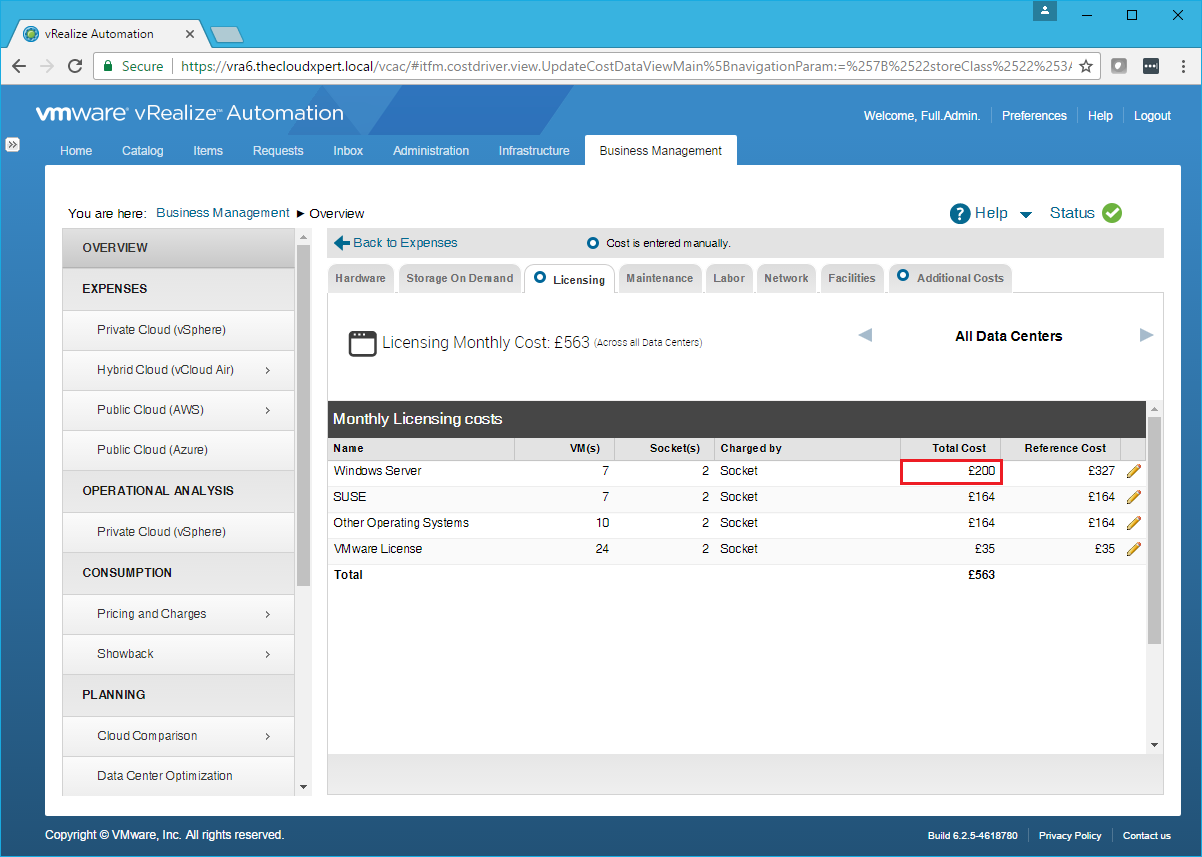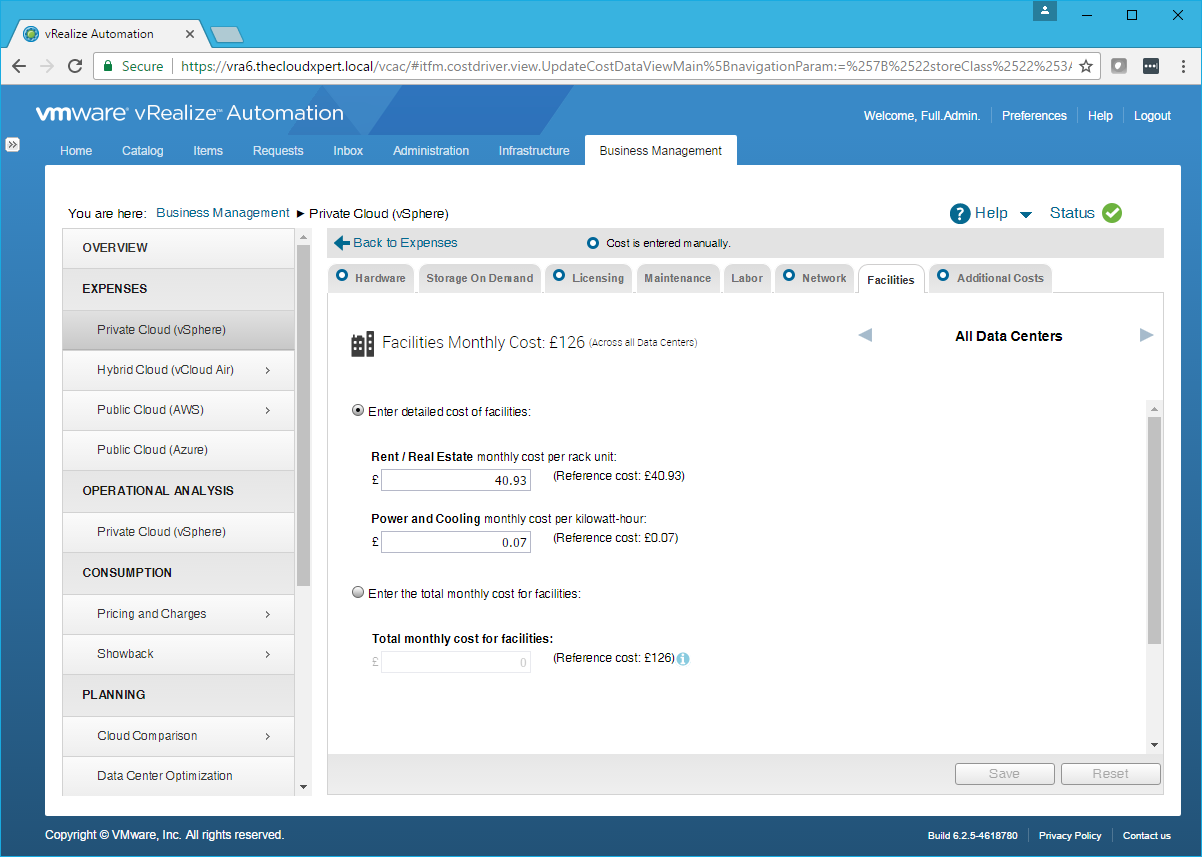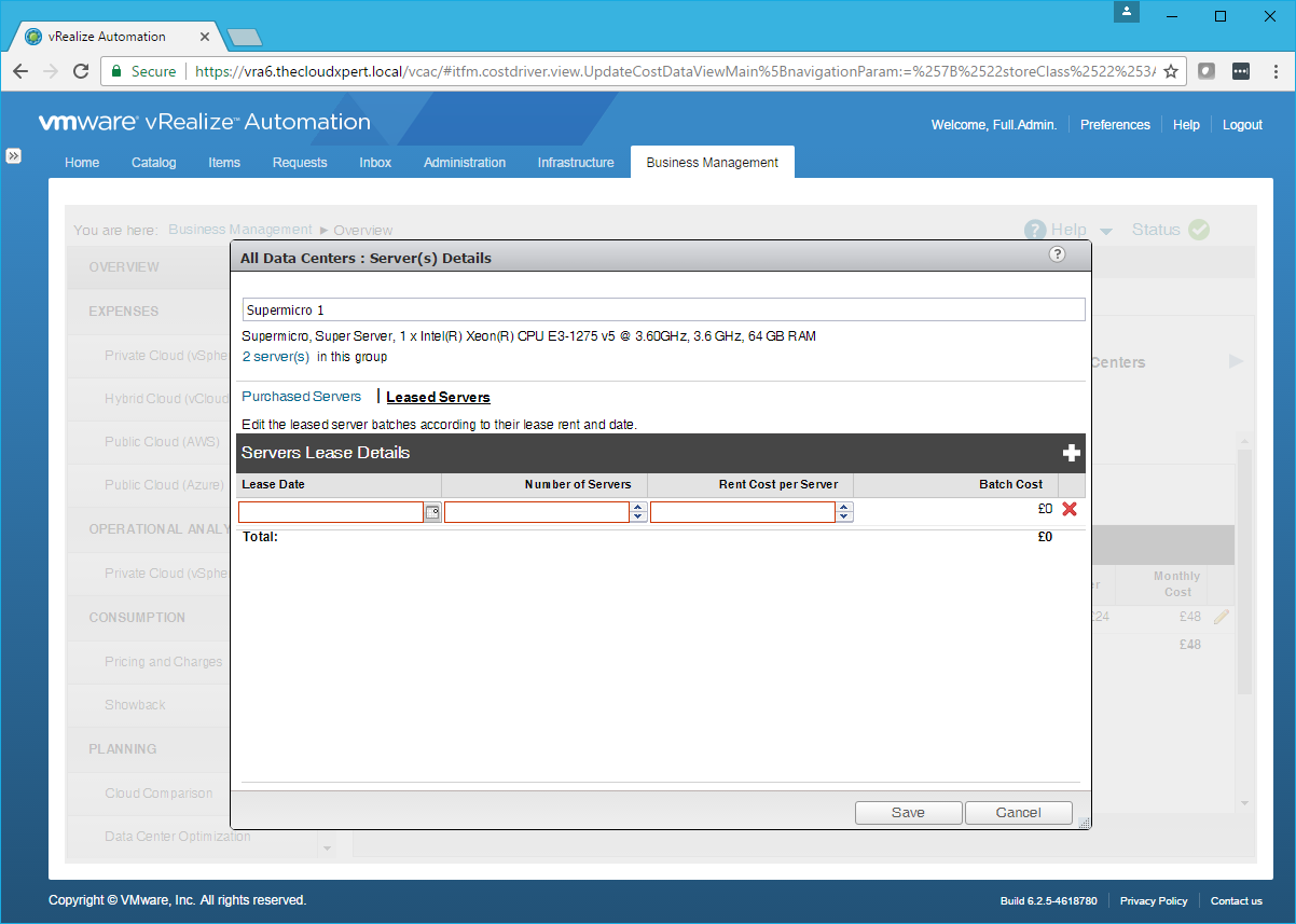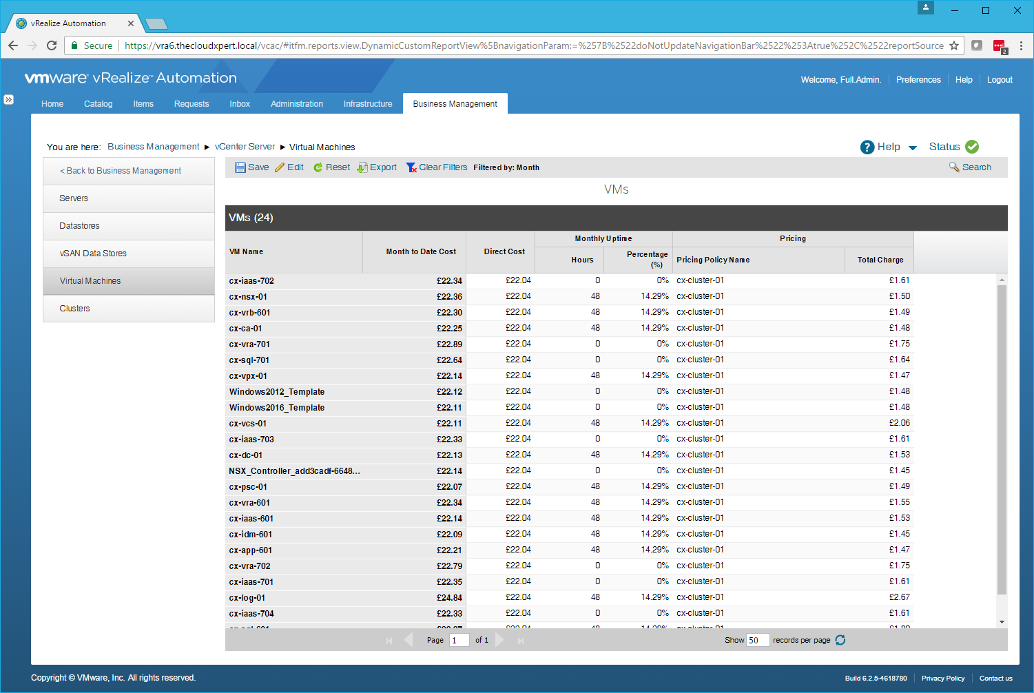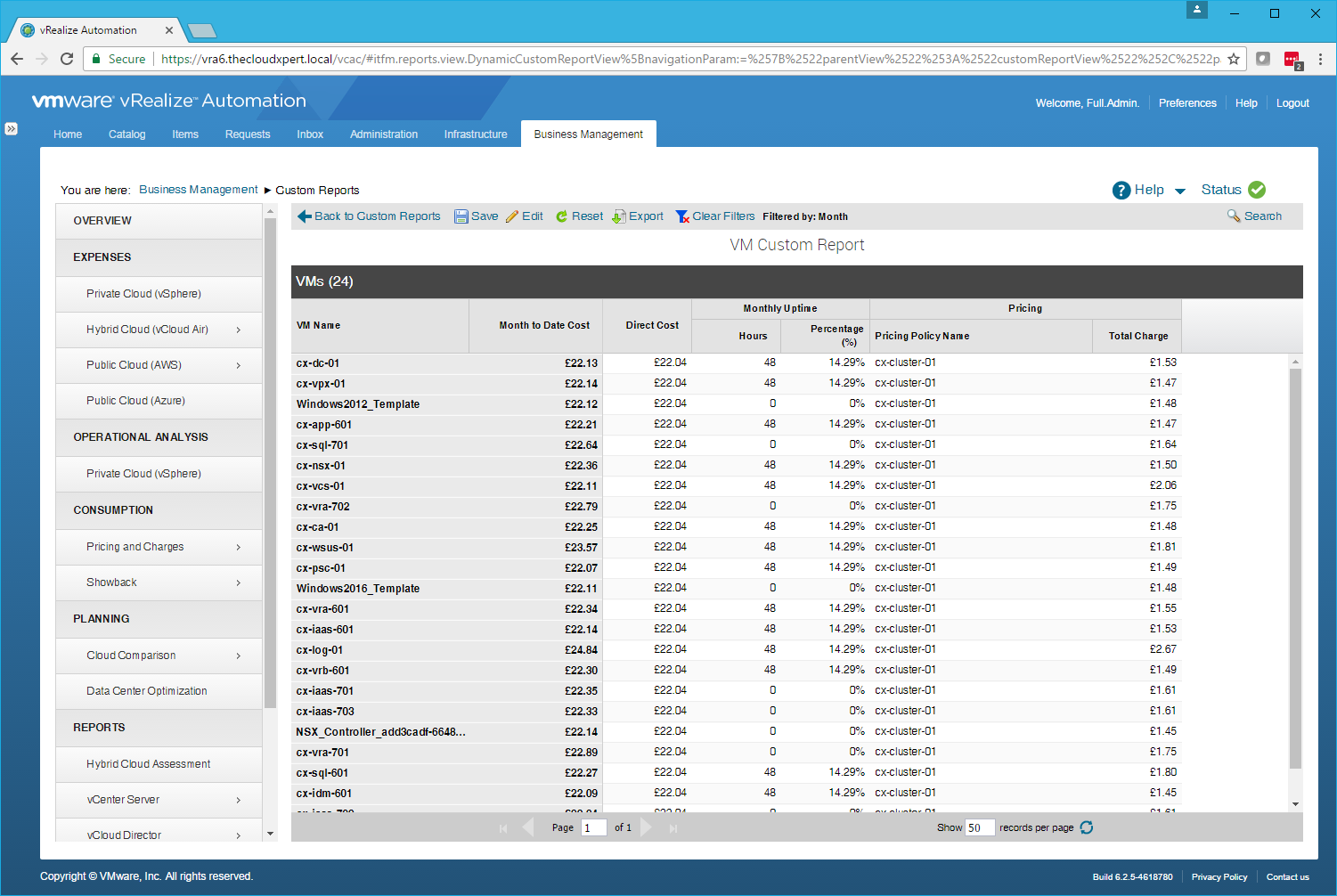 VCAP6-CMA Deploy - Objective 8.2: Configure vRealize Business Standard Costing and Reporting