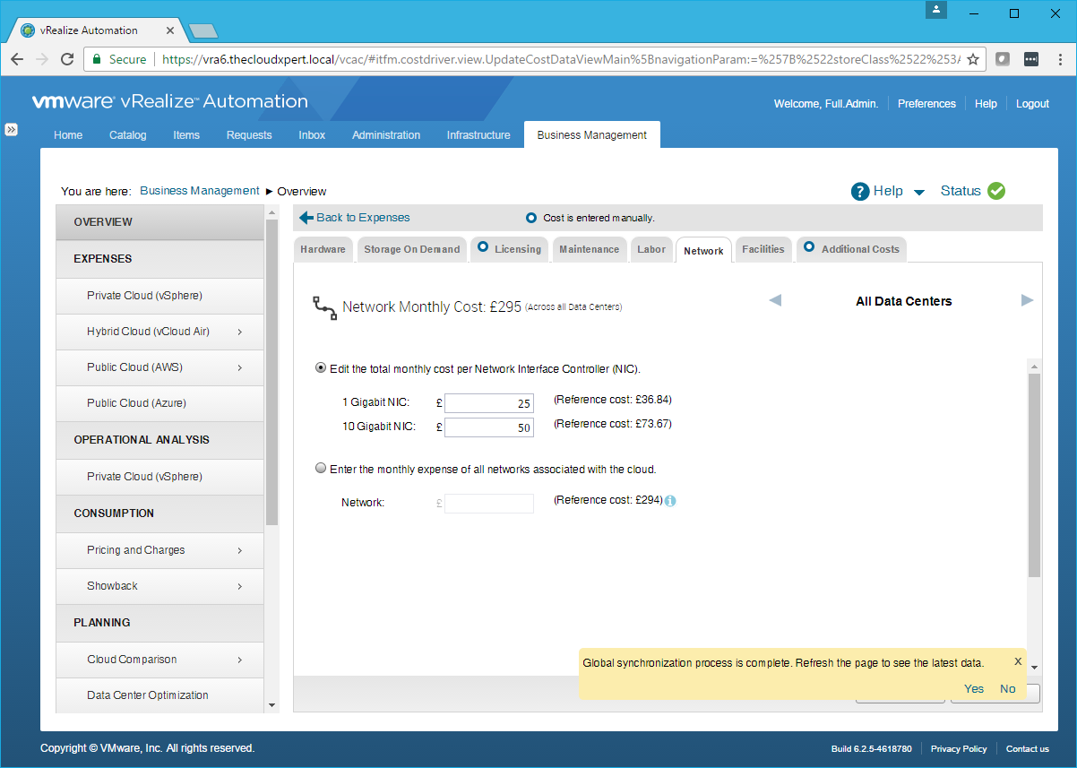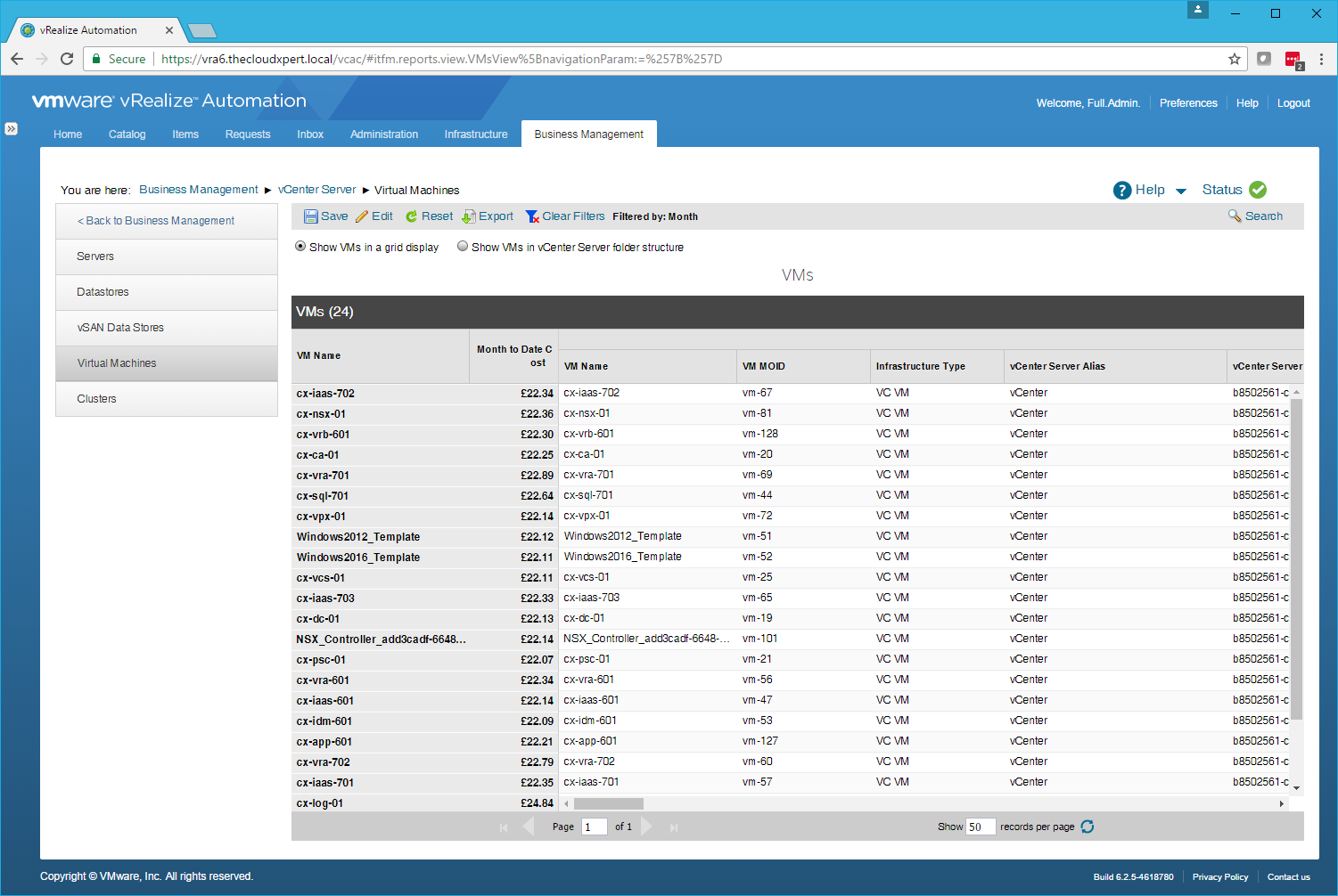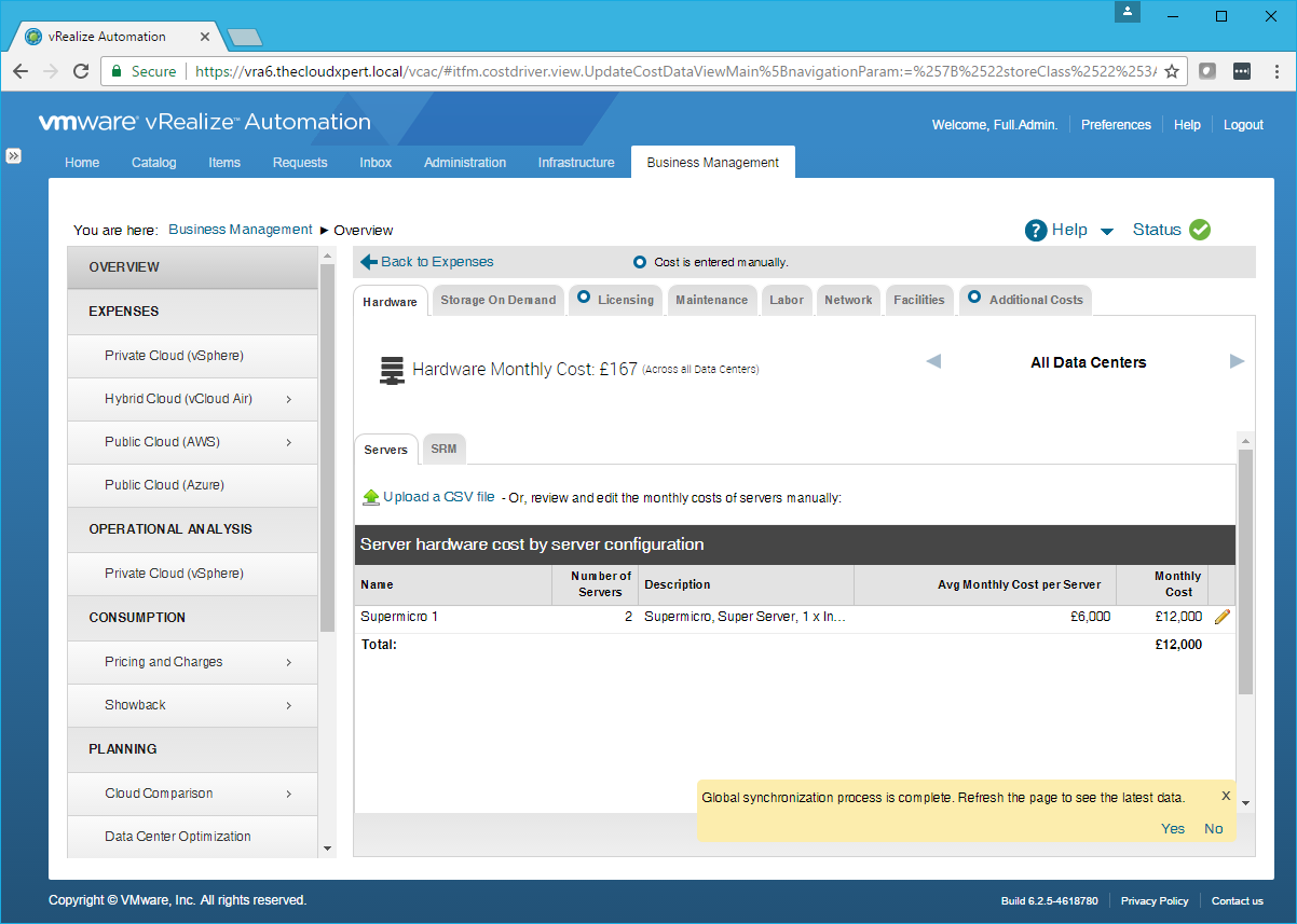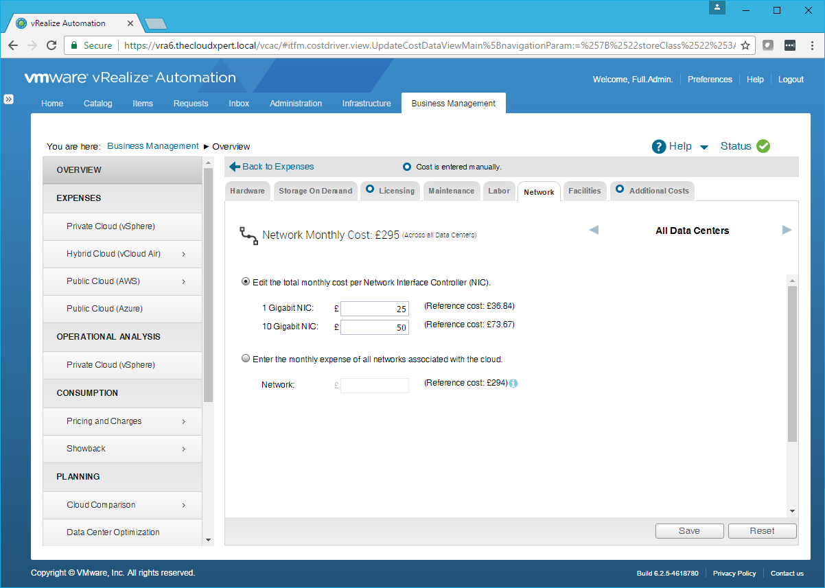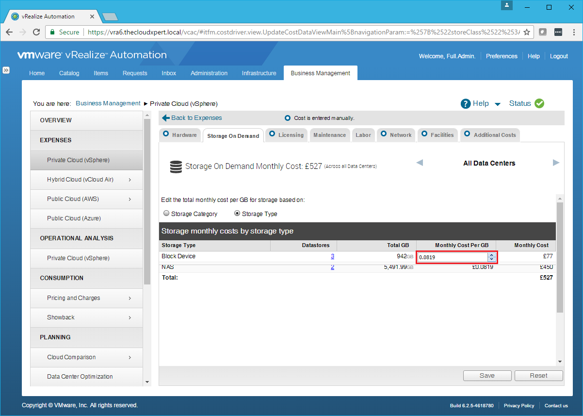 VCAP6-CMA Deploy - Objective 8.2: Configure vRealize Business Standard Costing and Reporting