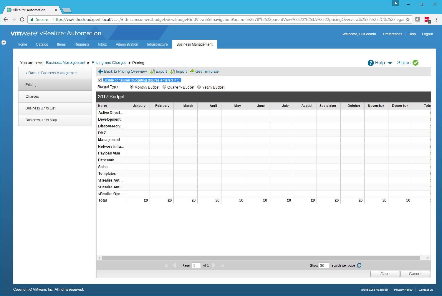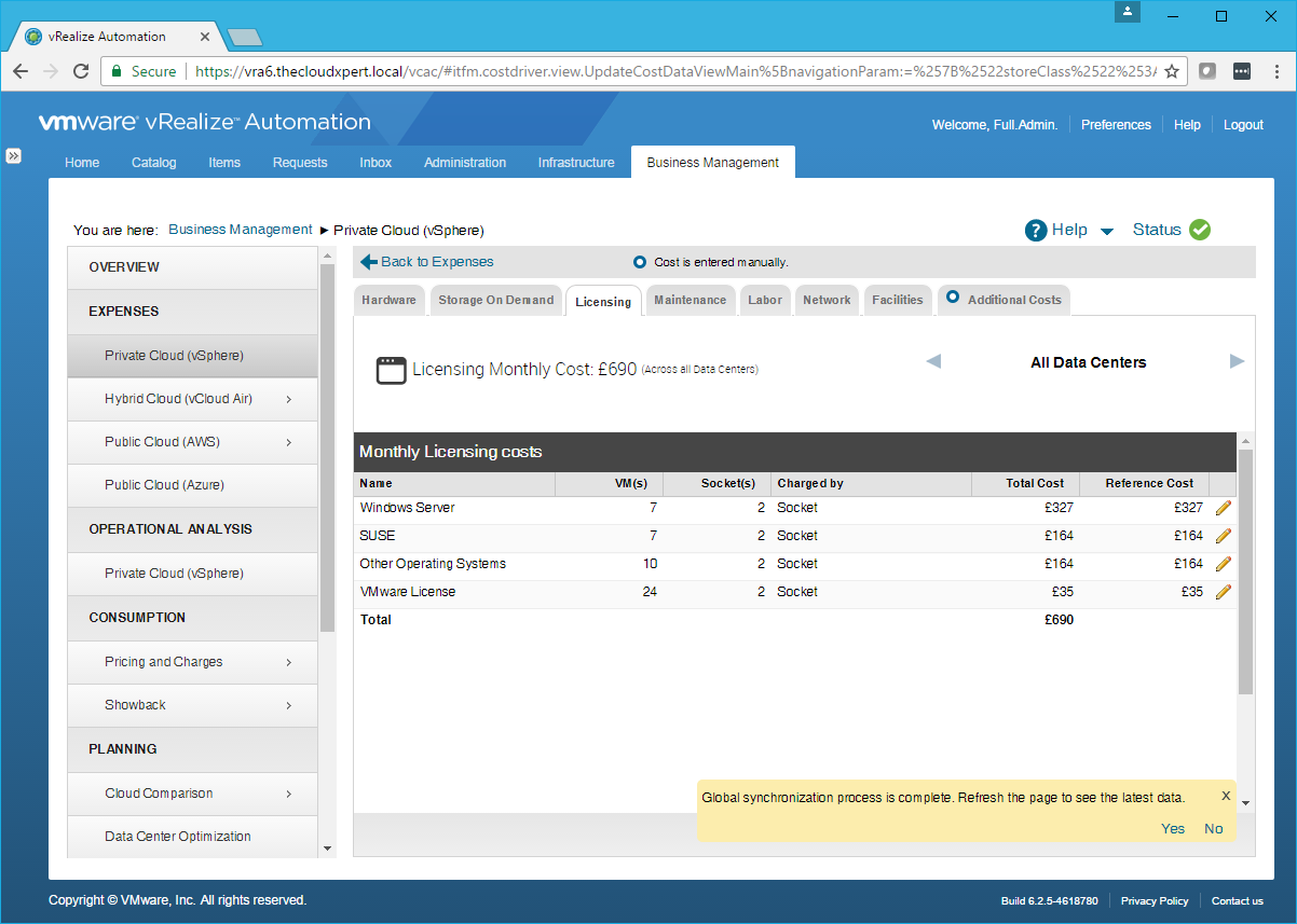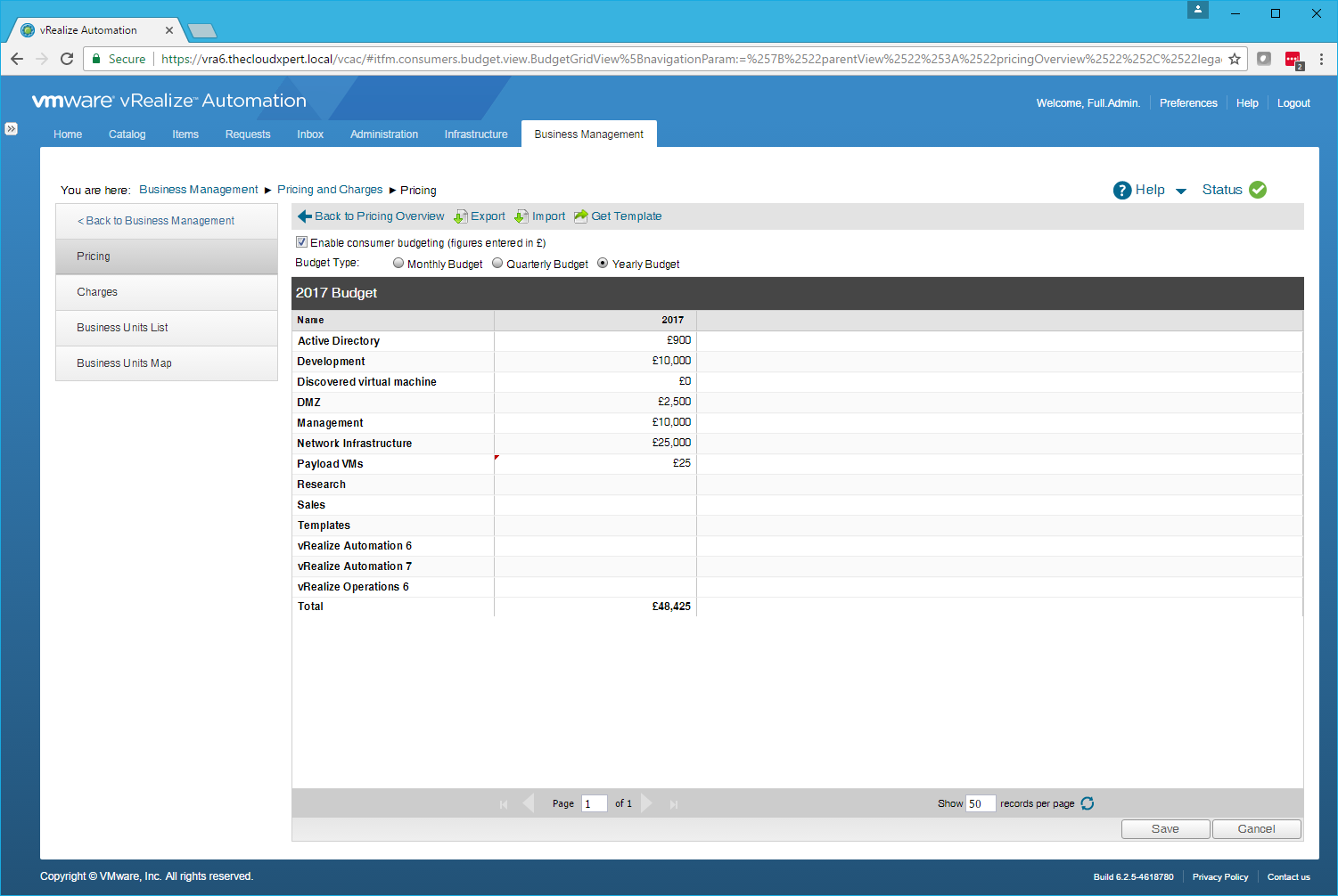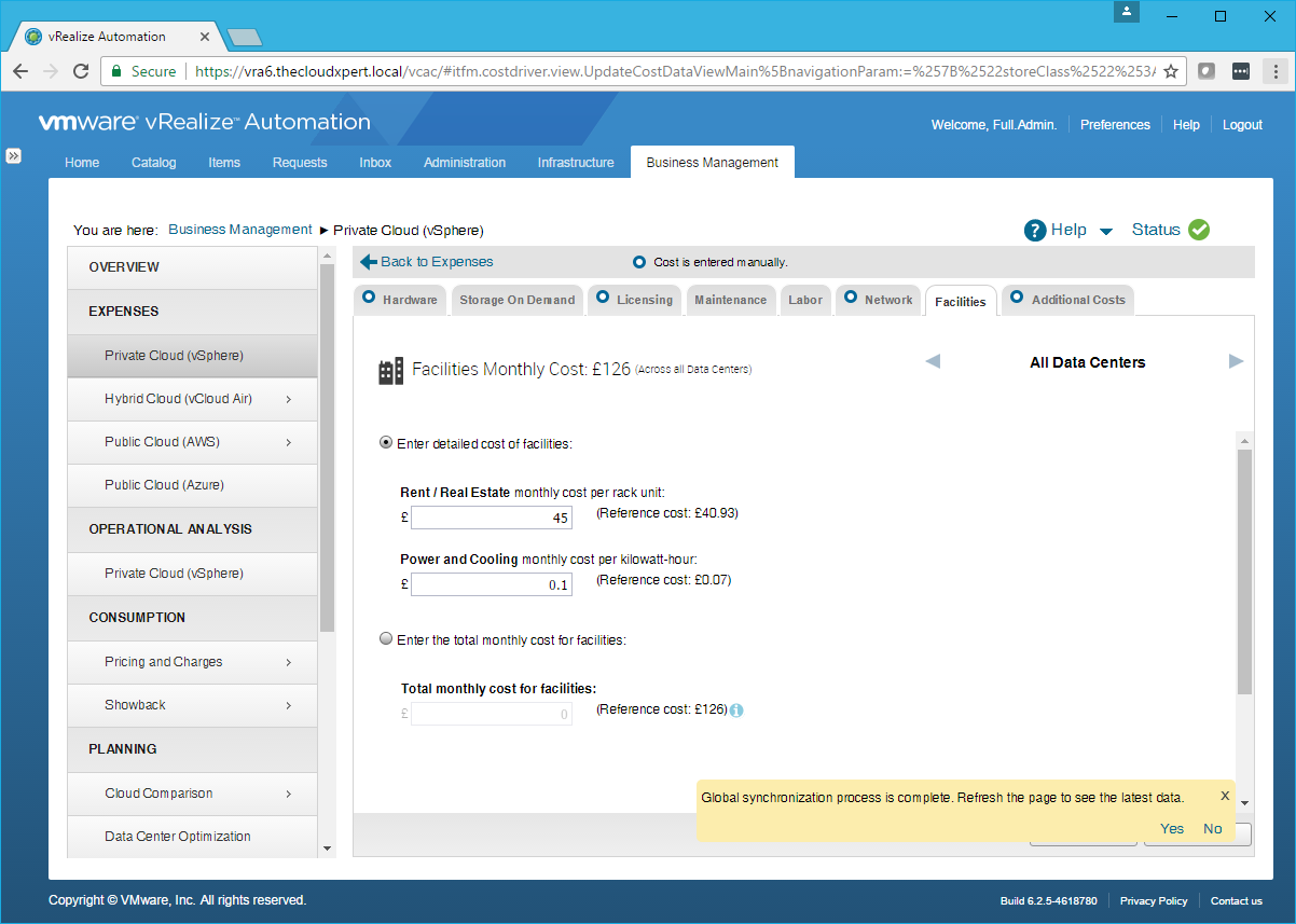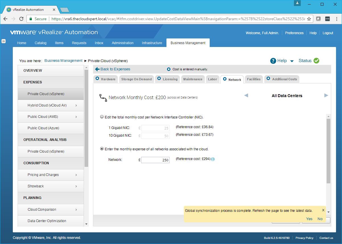 VCAP6-CMA Deploy - Objective 8.2: Configure vRealize Business Standard Costing and Reporting