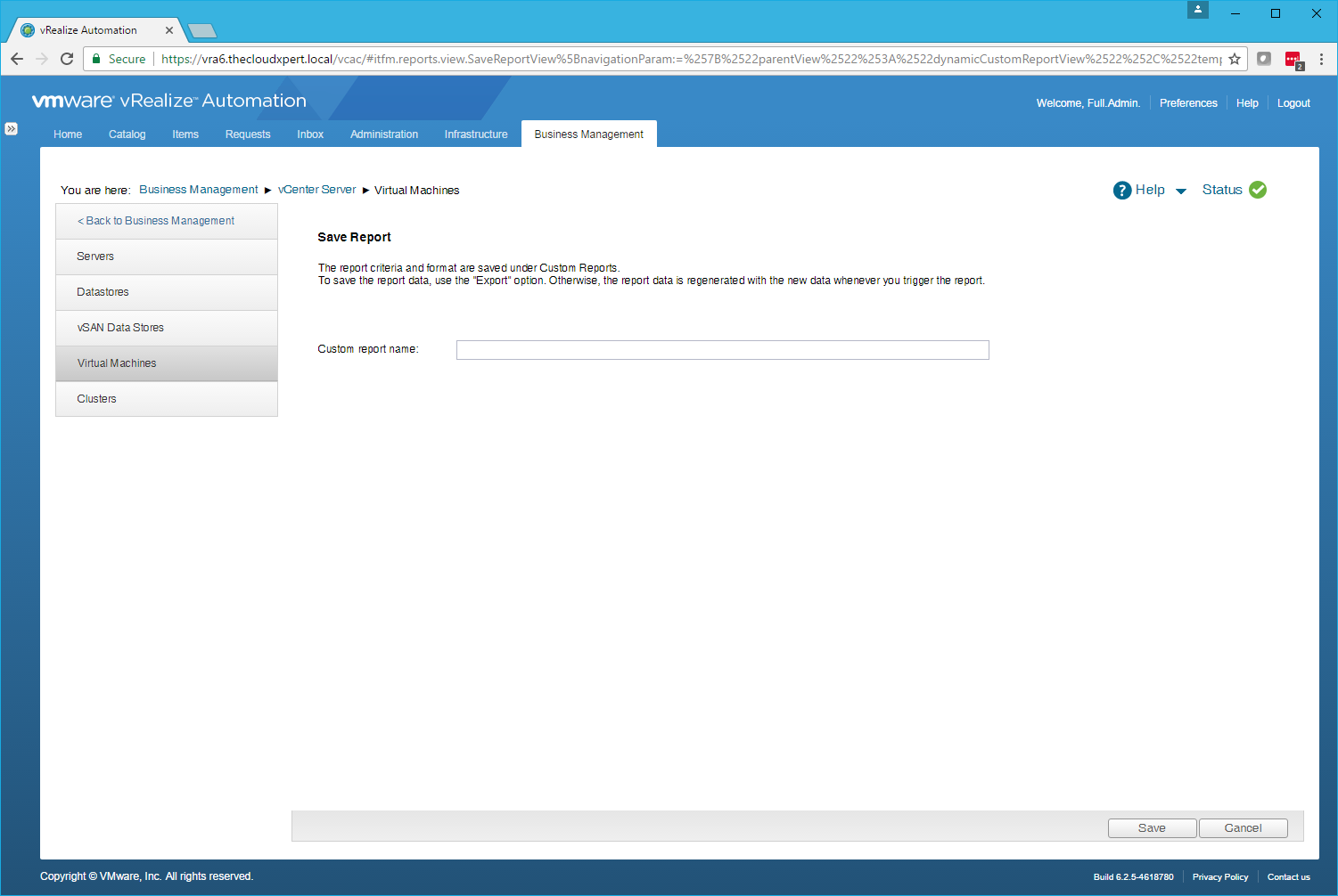 The process for creating a vRealize Automation Report is identical to creating a vCenter Server report.