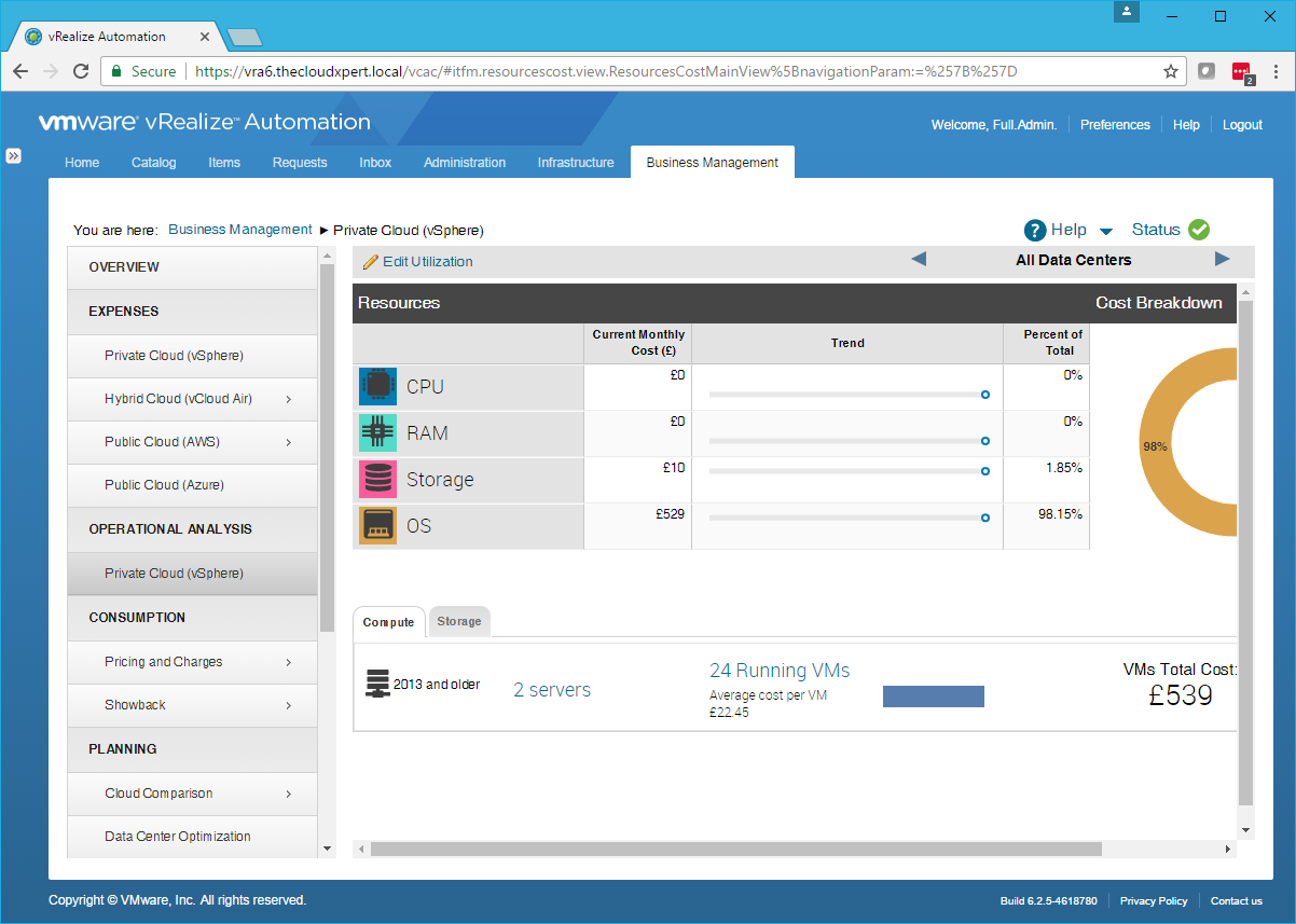 - Under Operational Analysis, click Private Cloud (vSphere)