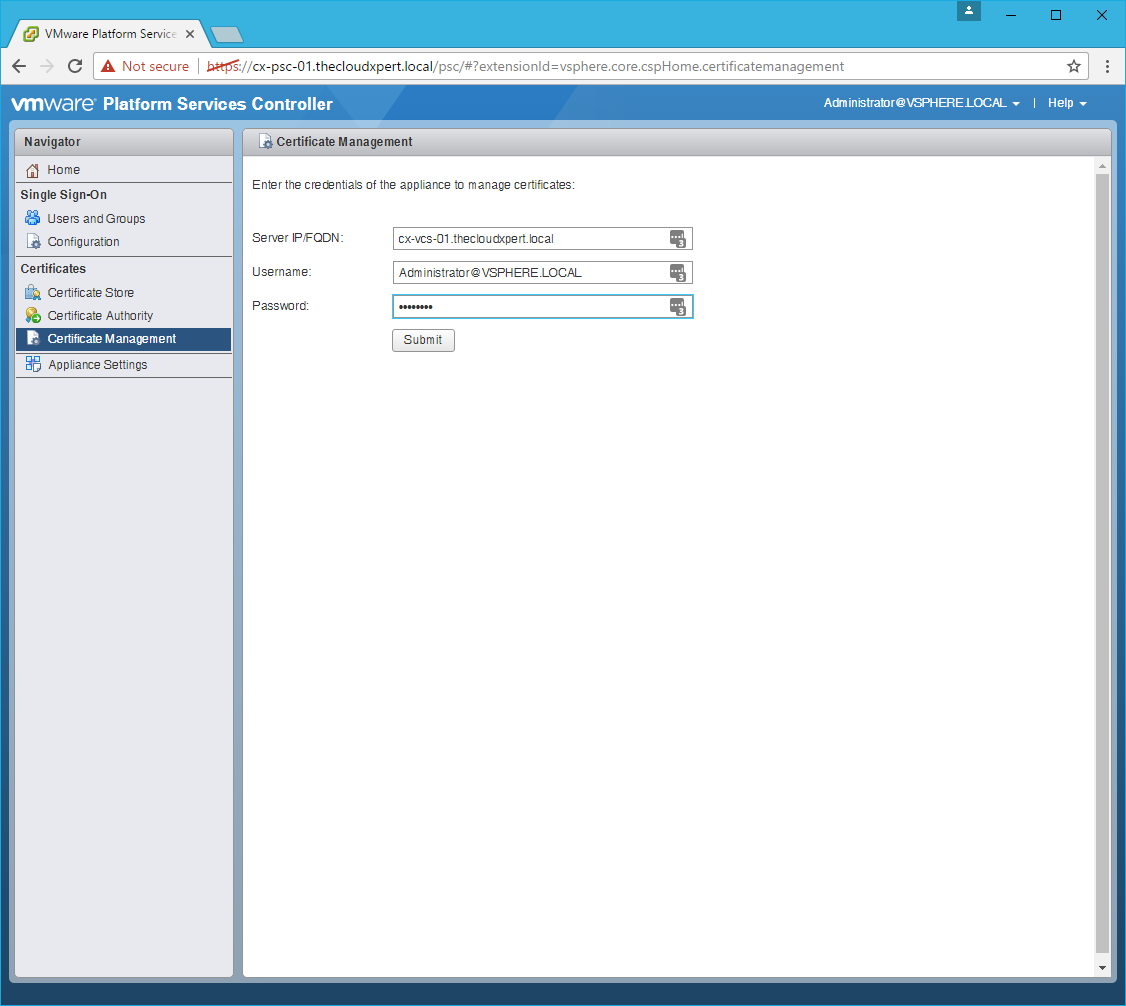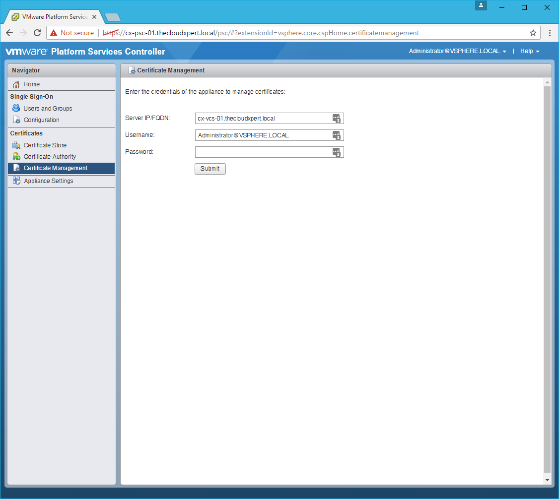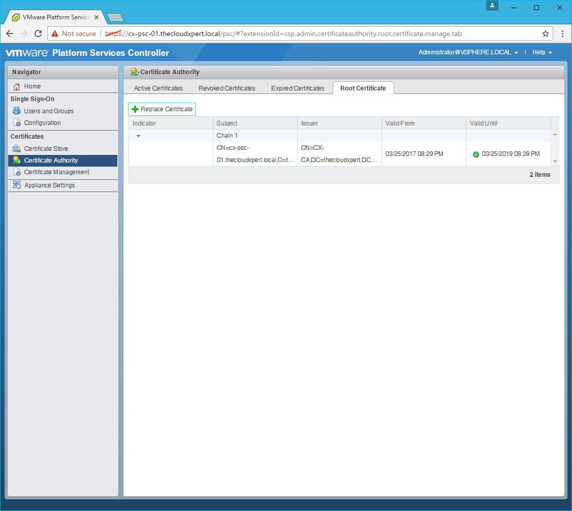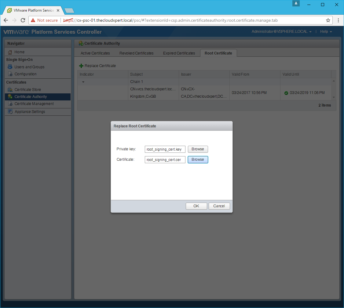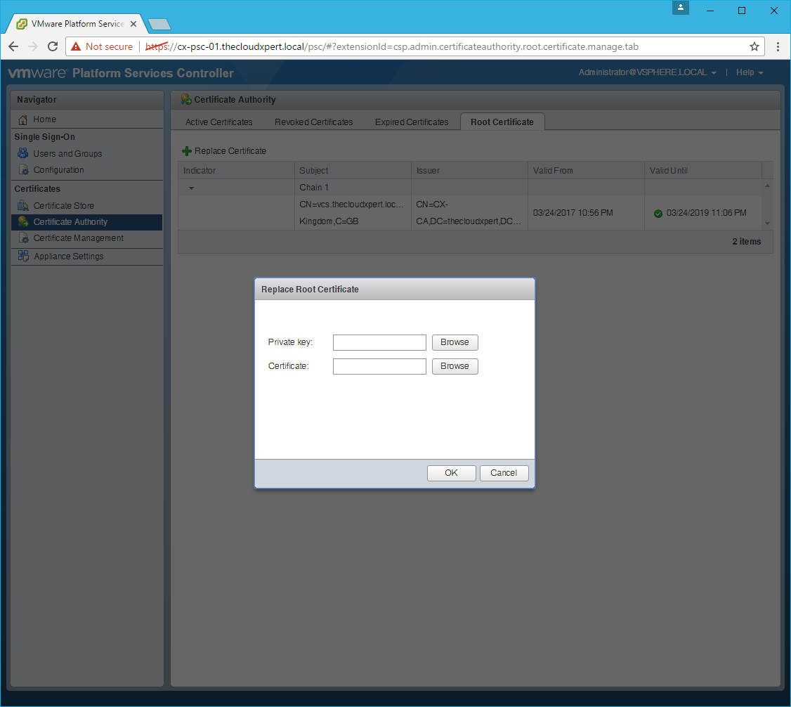 HOWTO: Replace a VMCA certificate via the GUI in vSphere 6.5 with PSC & VCSA