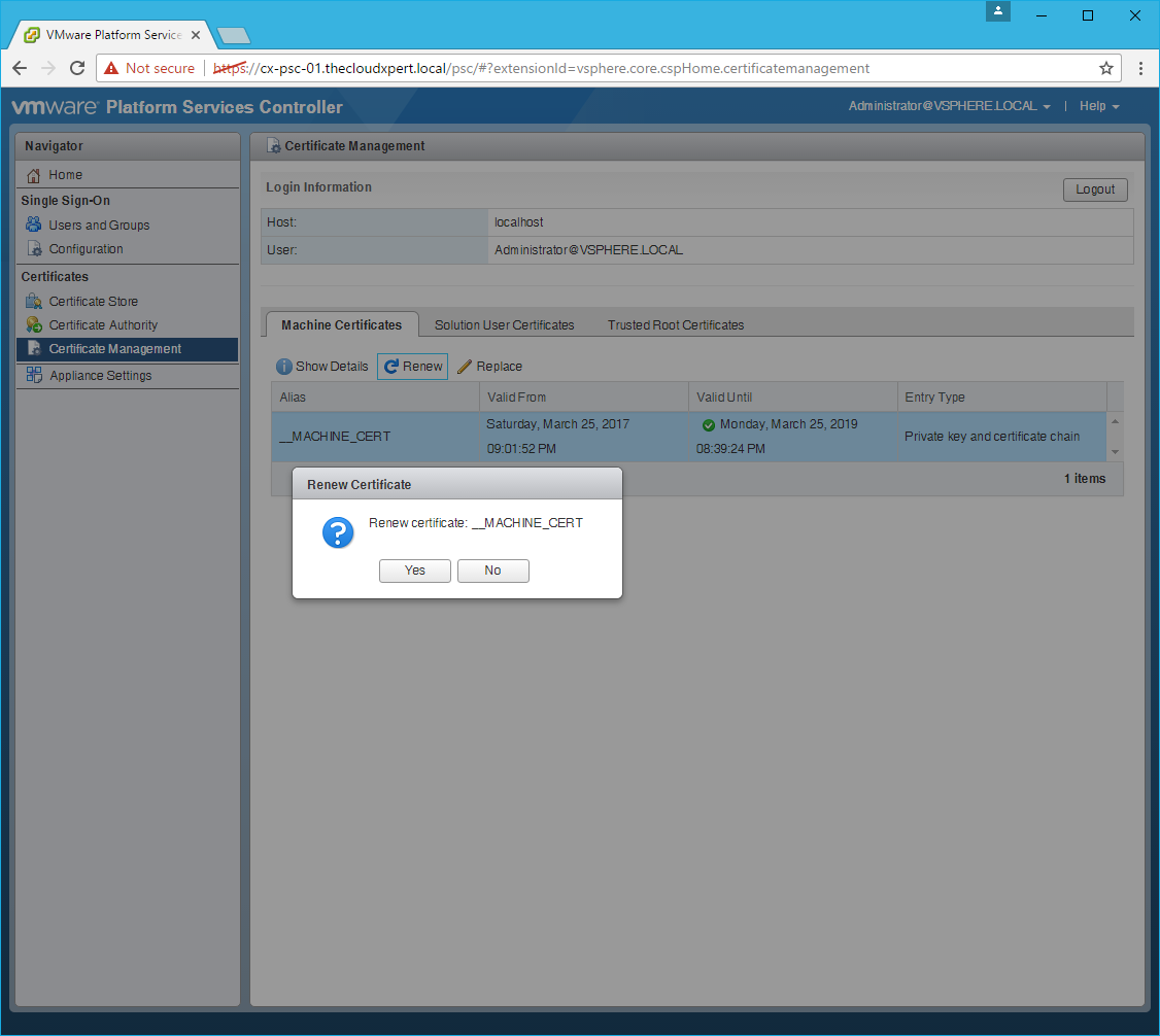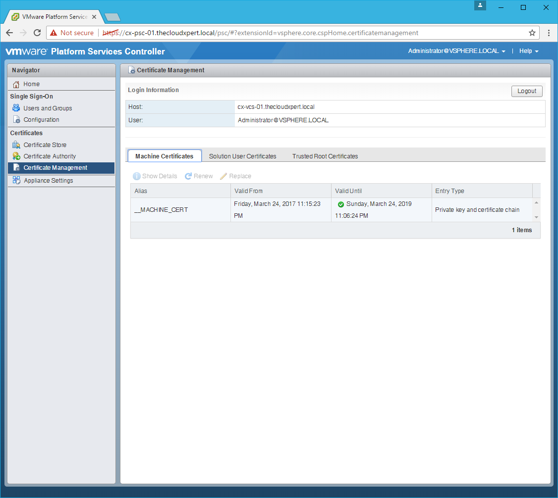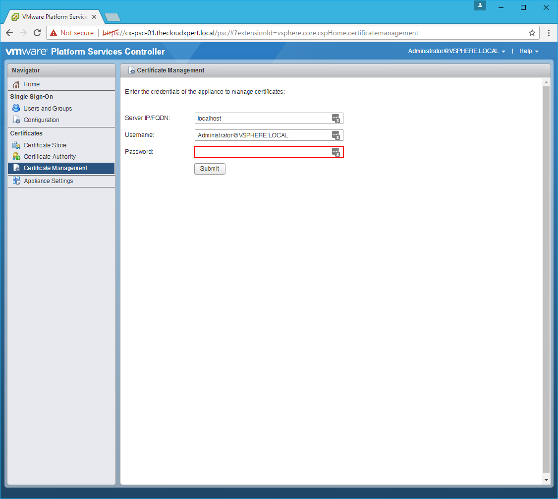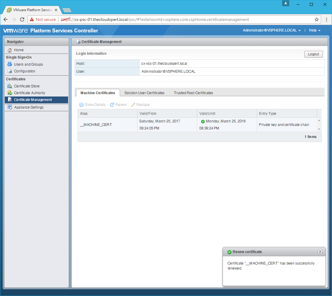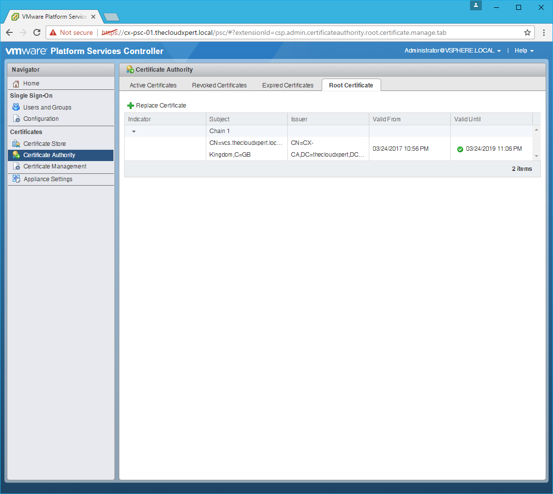 HOWTO: Replace a VMCA certificate via the GUI in vSphere 6.5 with PSC & VCSA