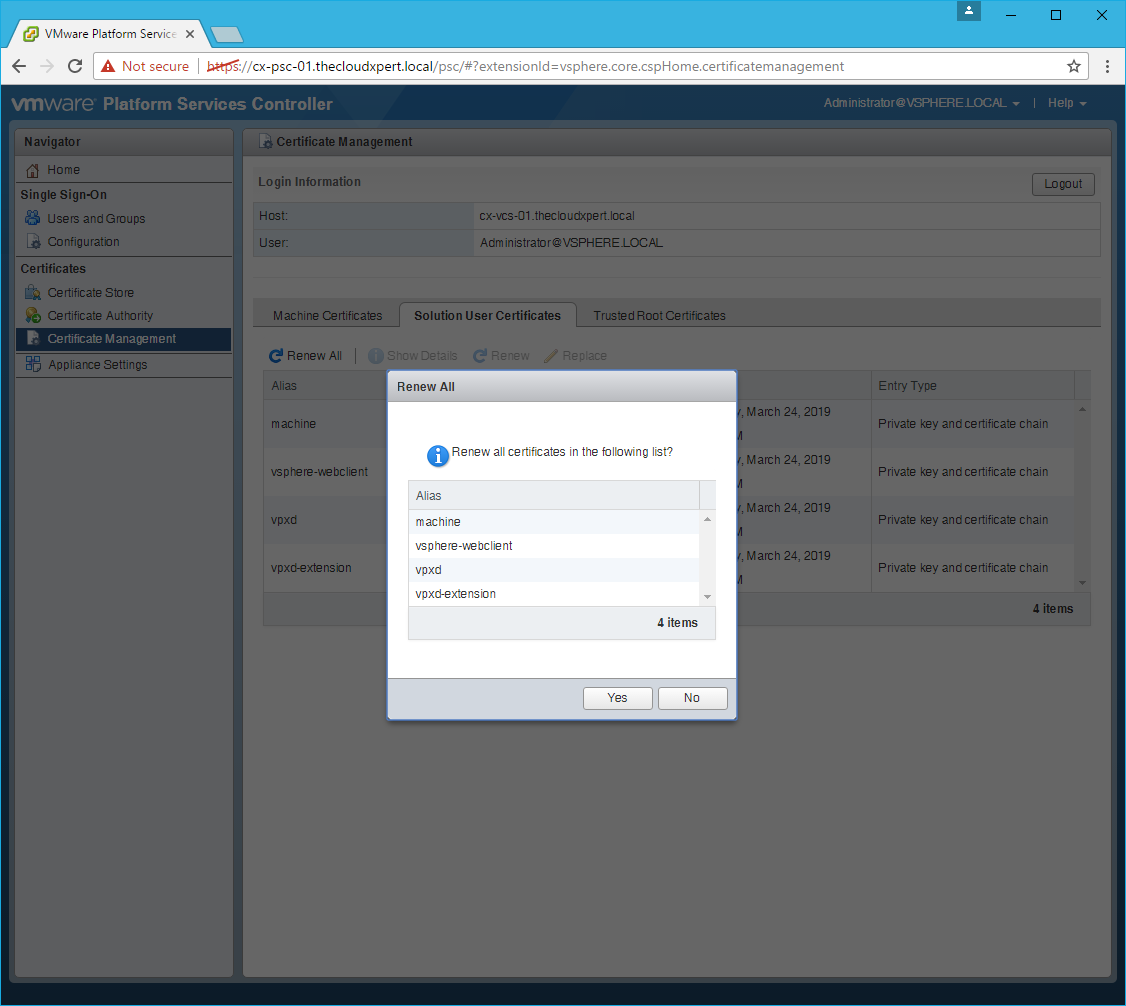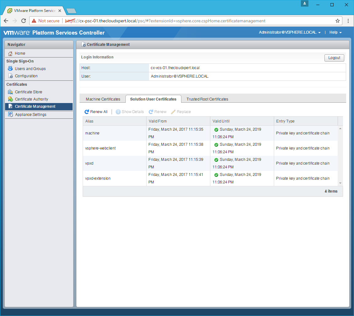 Renew the Solution User Certificates
