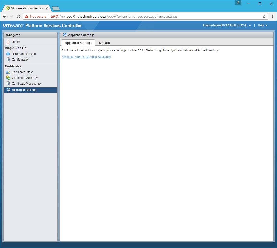 - Connect to the PSC Appliance.