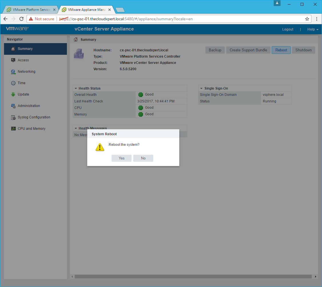 - Reboot the Platform Services Controller.