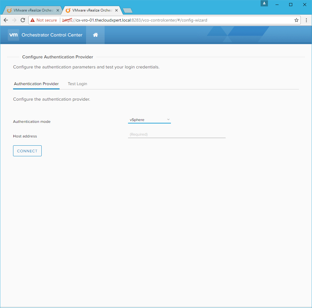 - Under Authentication Provider, enter the FQDN of the Platform Services Controller into the Host address text box and click Connect.