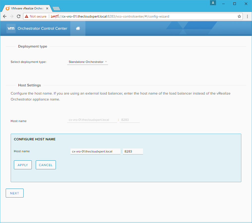 in the Host name text box with the DNS CNAME forvro.fqdn