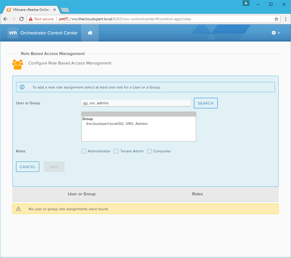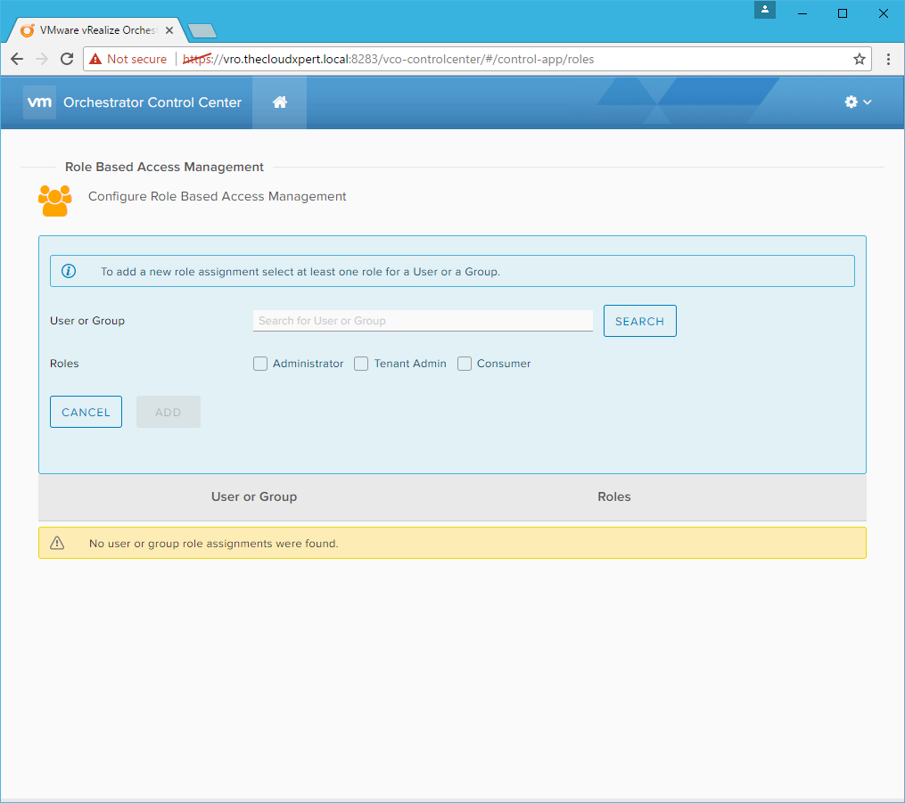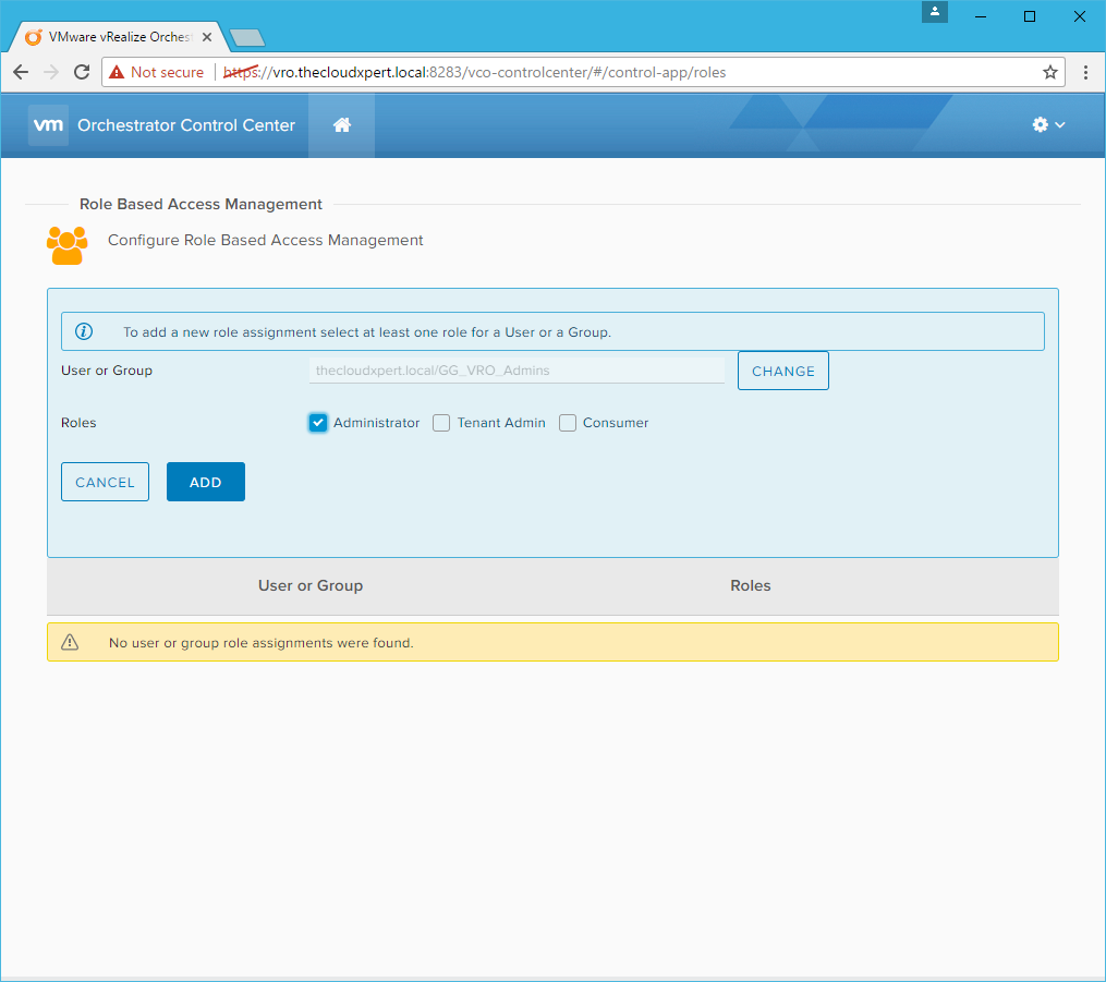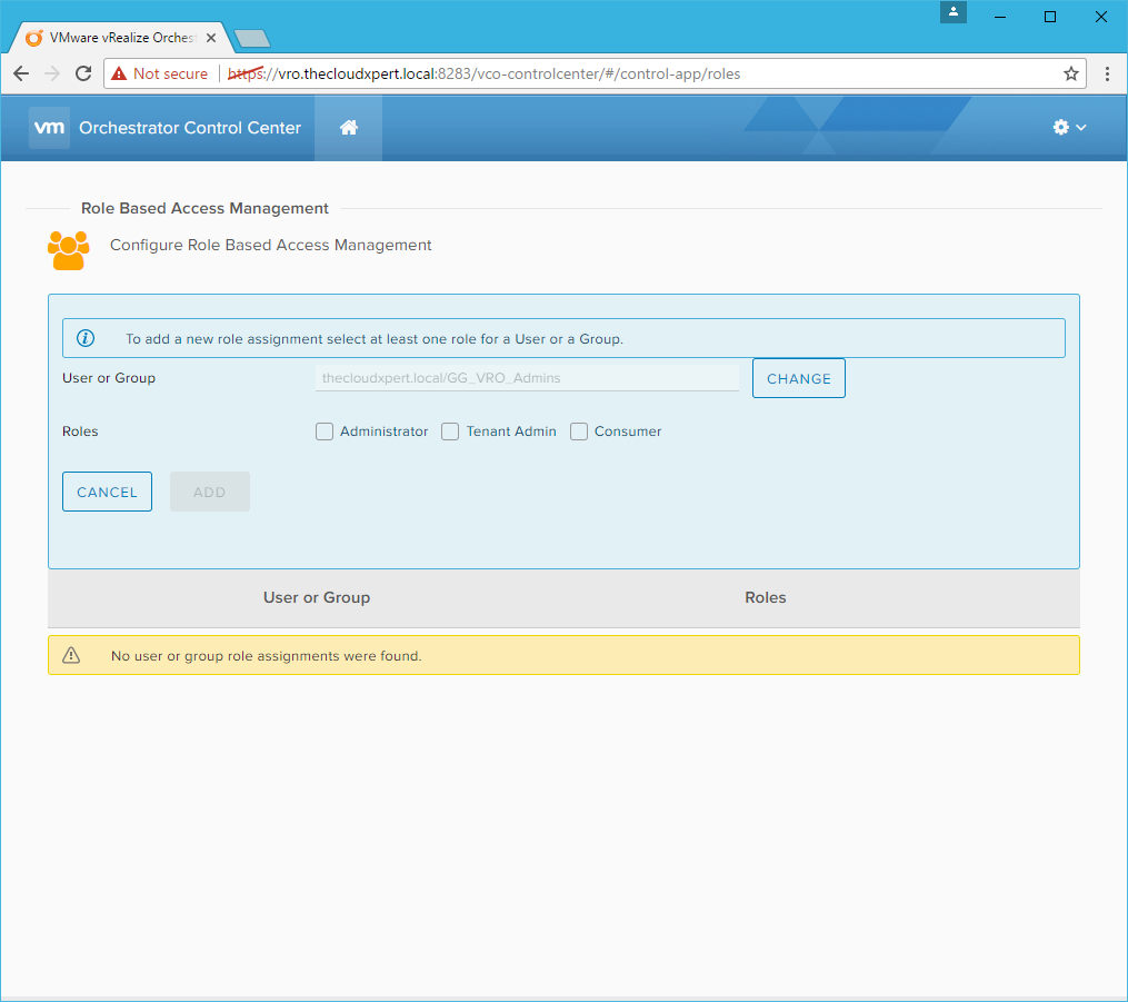 HOWTO: Configure Role Based Access Management in vRealize Orchestrator 7.3 Control Center