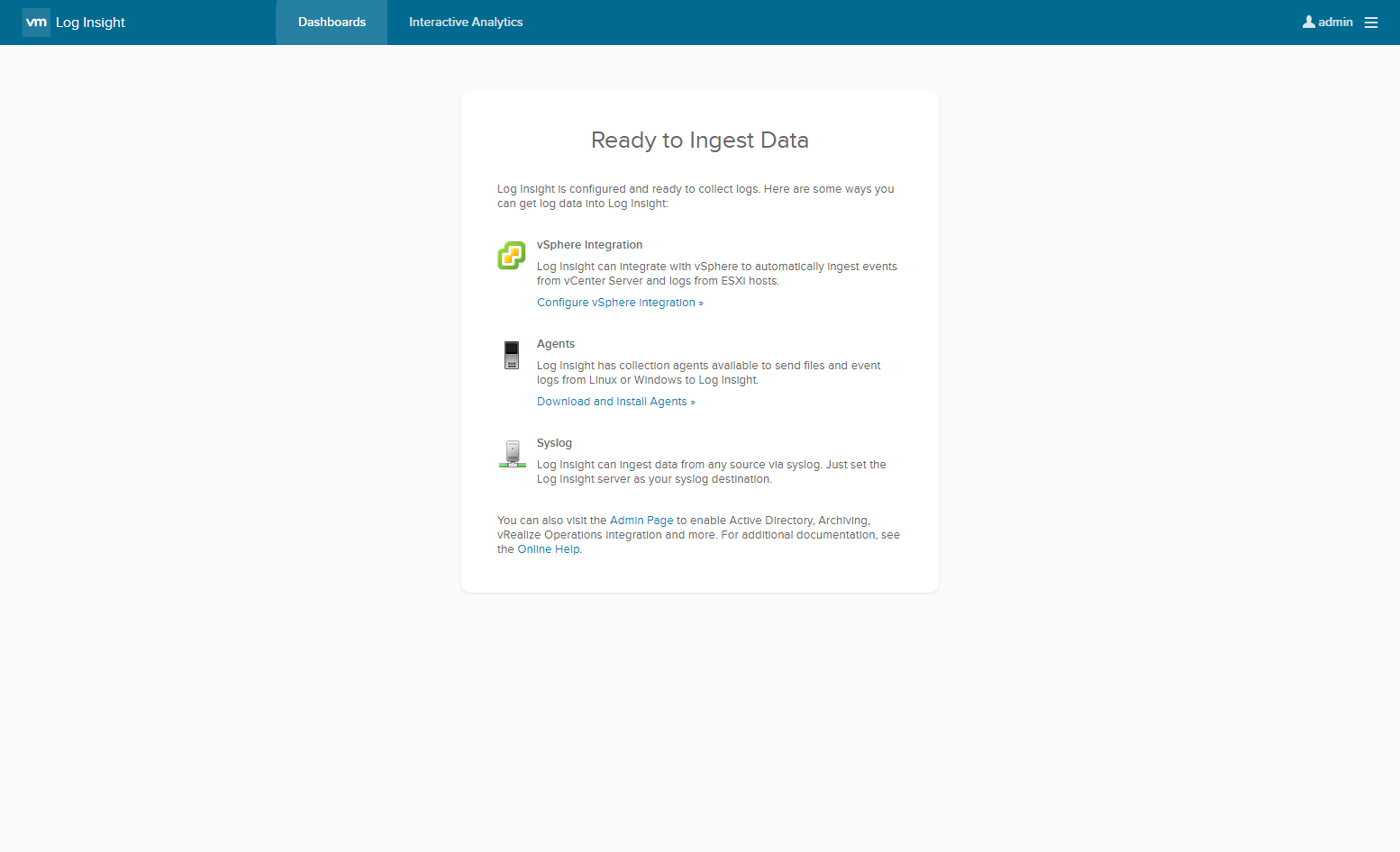 1. Using a web browser, navigate to the VMware vRealize Log Insight page, https://vli-appliance.fqdn.