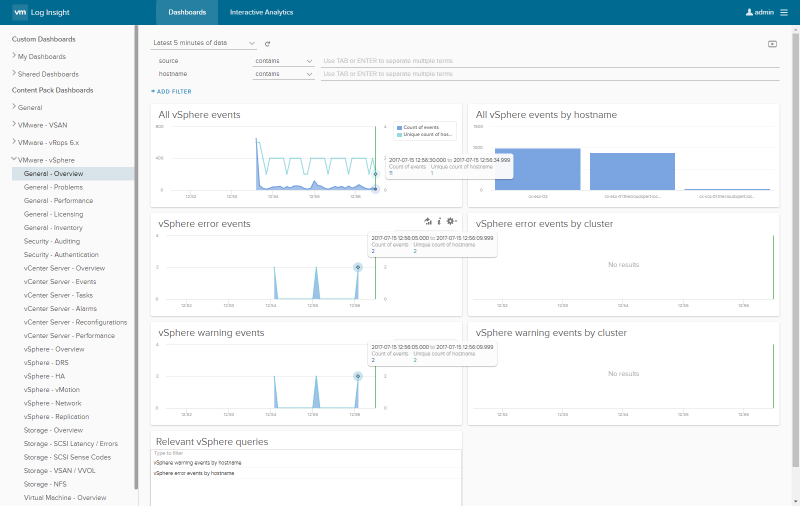 1. Click Dashboards and then expand VMware-vSphere to show what is being captured!