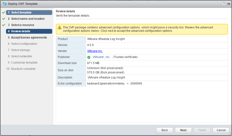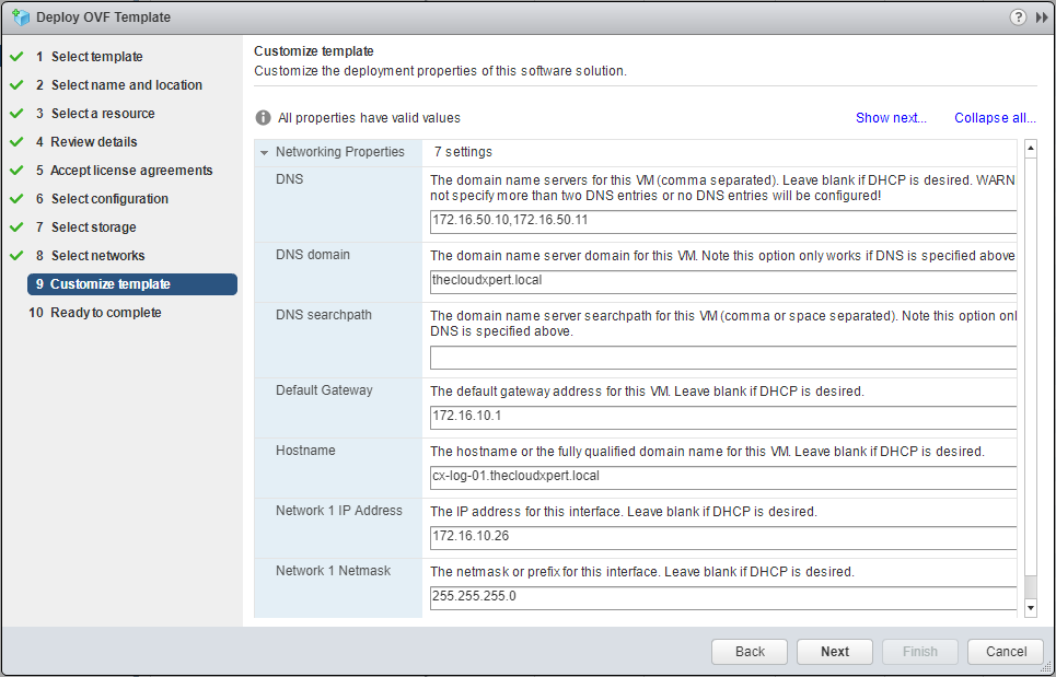 1. The VMware vRealize Log Insight Appliance will now be deployed.